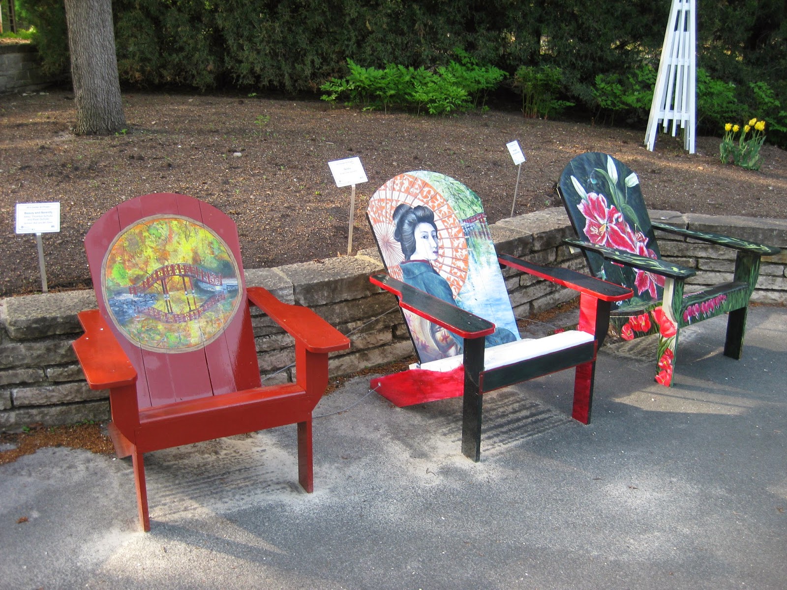 Just three of the twenty-five Adirondack chairs comprising our 2014 Garden Art Display! These chairs will be auctioned off on September 7th!