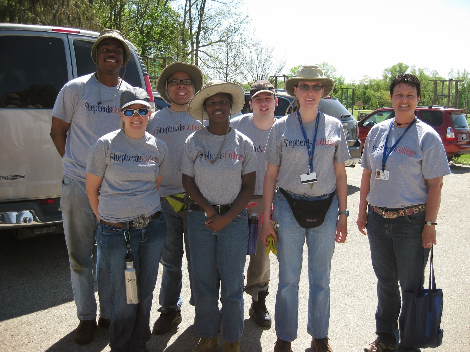 Today we had some wonderful assistance from six students that travelled to the gardens from Shepherds College (Union Grove, WI). The gang (seen above) with their instructor Leslie (far right) worked with Janice and Darcie in the sunken garden with a focus on weeding and planting. The team was motivated and did a great job planting two garden beds and eight containers. Their work in that garden was perfect timing because of looming weddings! We've worked with Shepherds College students in the past and appreciate their commitment to the gardens and hopefully they had an enriching experience as well. Janice and Darcie helped facilitate the day and everyone enjoyed the beautiful weather. Below are some images of their progress and activities.