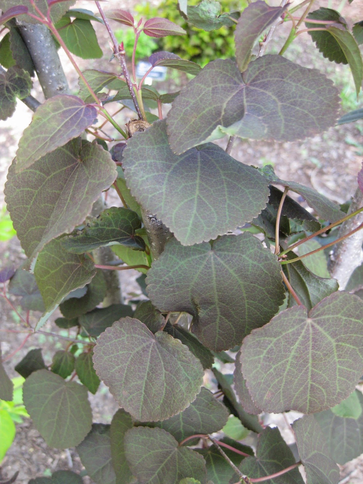 'Red Fox' katsuratree (Cercidiphyllum japonicum 'Rotfuchs') with maroon spring growth (fades)