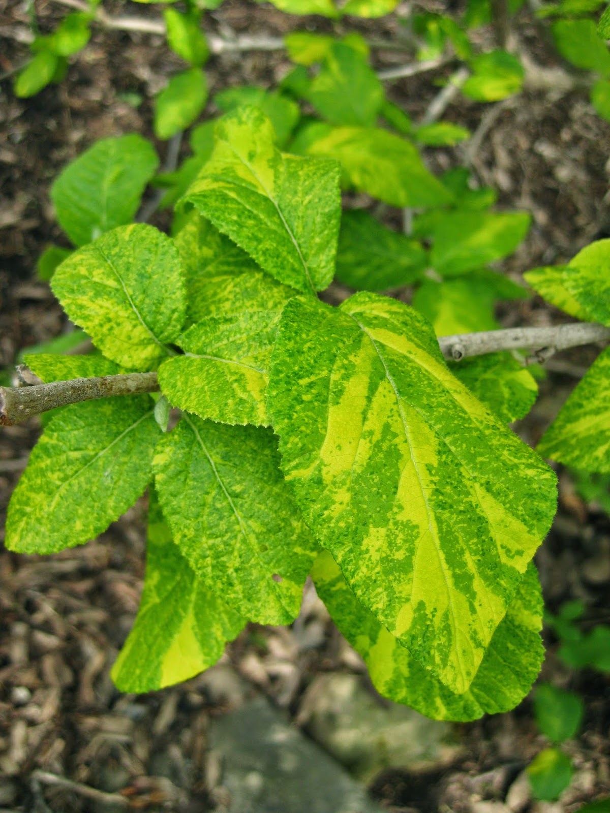 emerging leaves of the variegated Norway maple (Acer platanoides 'Drummondii')