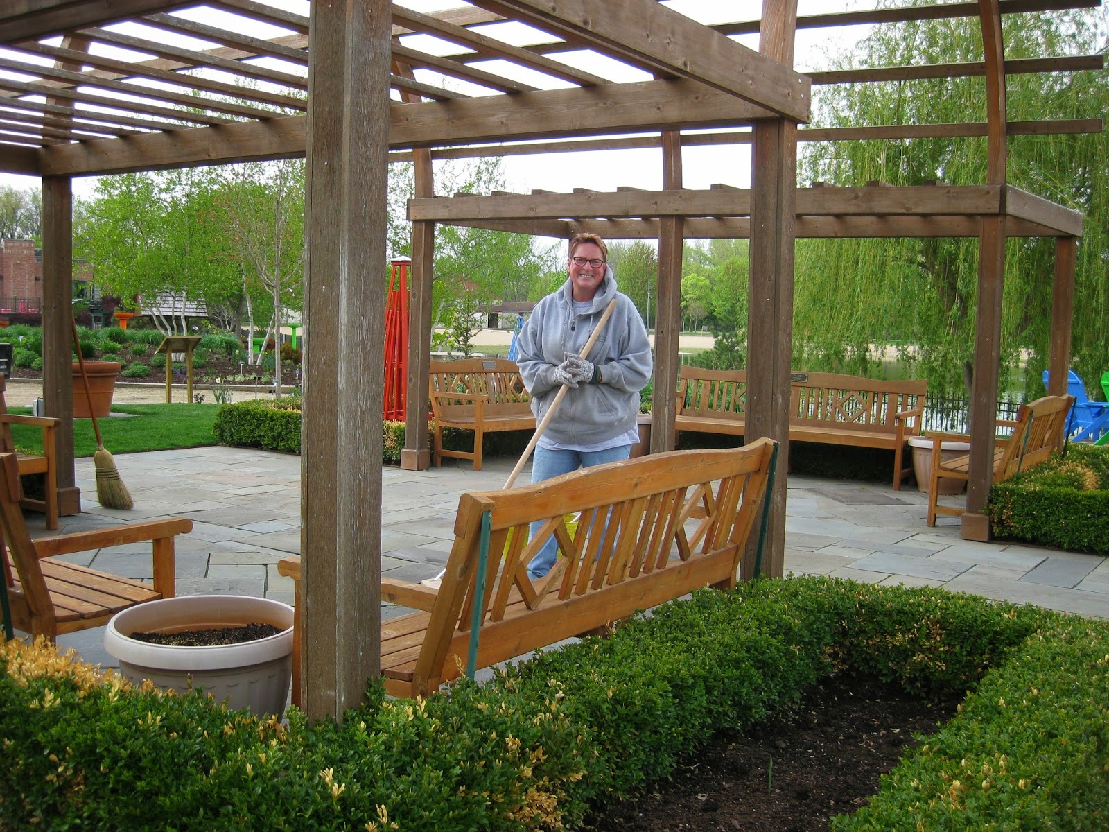 Fridays are always busy for the grounds staff. Above is Cindy who did a nice job tidying the North point garden (prior to the wedding) and also worked her gardening Kung Fu in the entrance garden and sunken garden followed by some spot watering in the holding yard. Pat push mowed and worked on some serious edging in the entrance garden and along our frontage road (Palmer Drive). Terry also push mowed, smoothed out rototilled beds, cut back shrubs and helped tidy up the sunken garden. Janice did the cutting display, tidied up the formal rose garden (another wedding) and bounced between some other projects. I was able to check out the gardens and continue to balance spring preparations with desk work. Below are some additional photos of the increasingly more colorful garden.