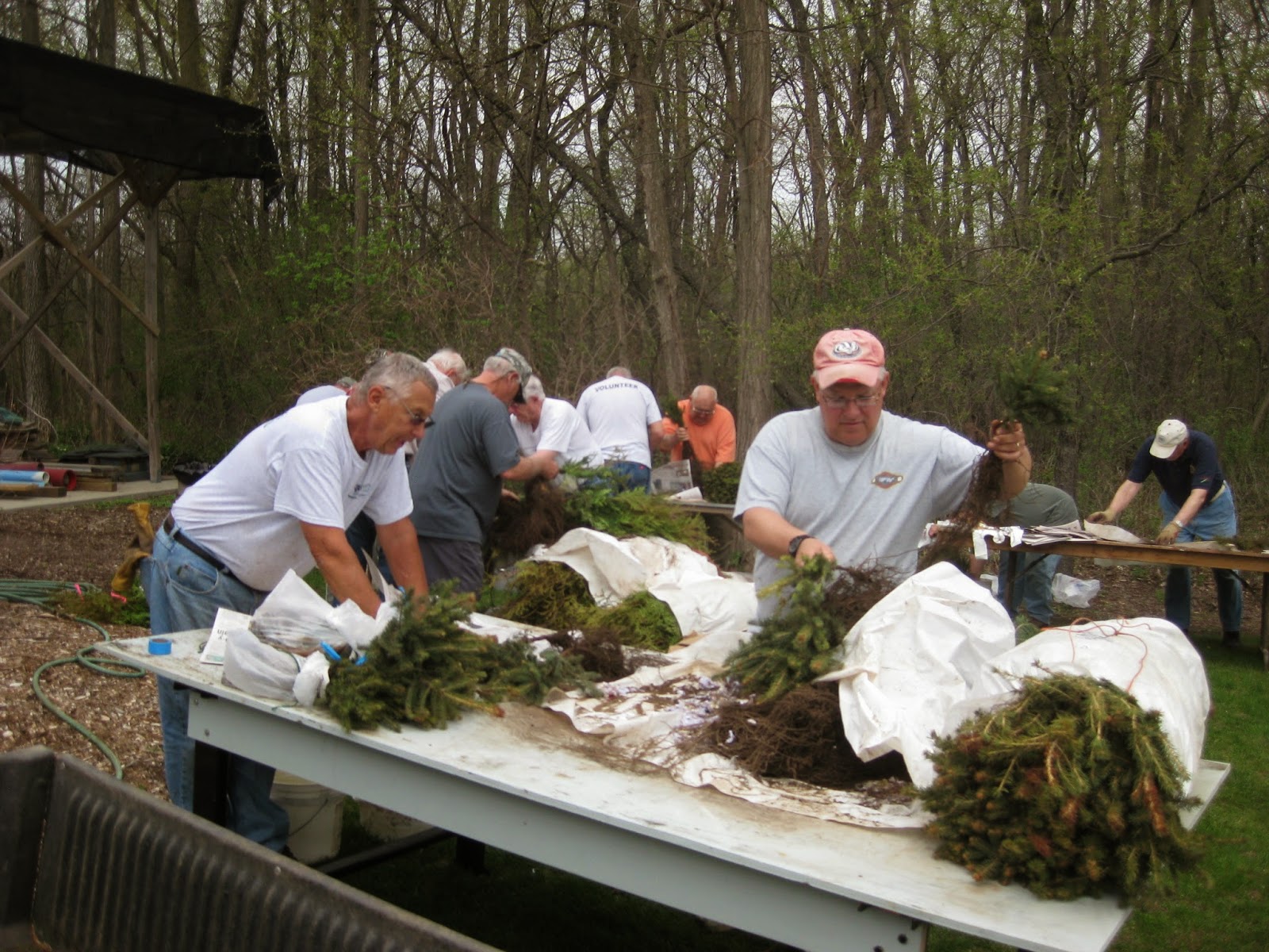 members of the Blackhawk Golden Kiwanis Club processing trees (above and below)