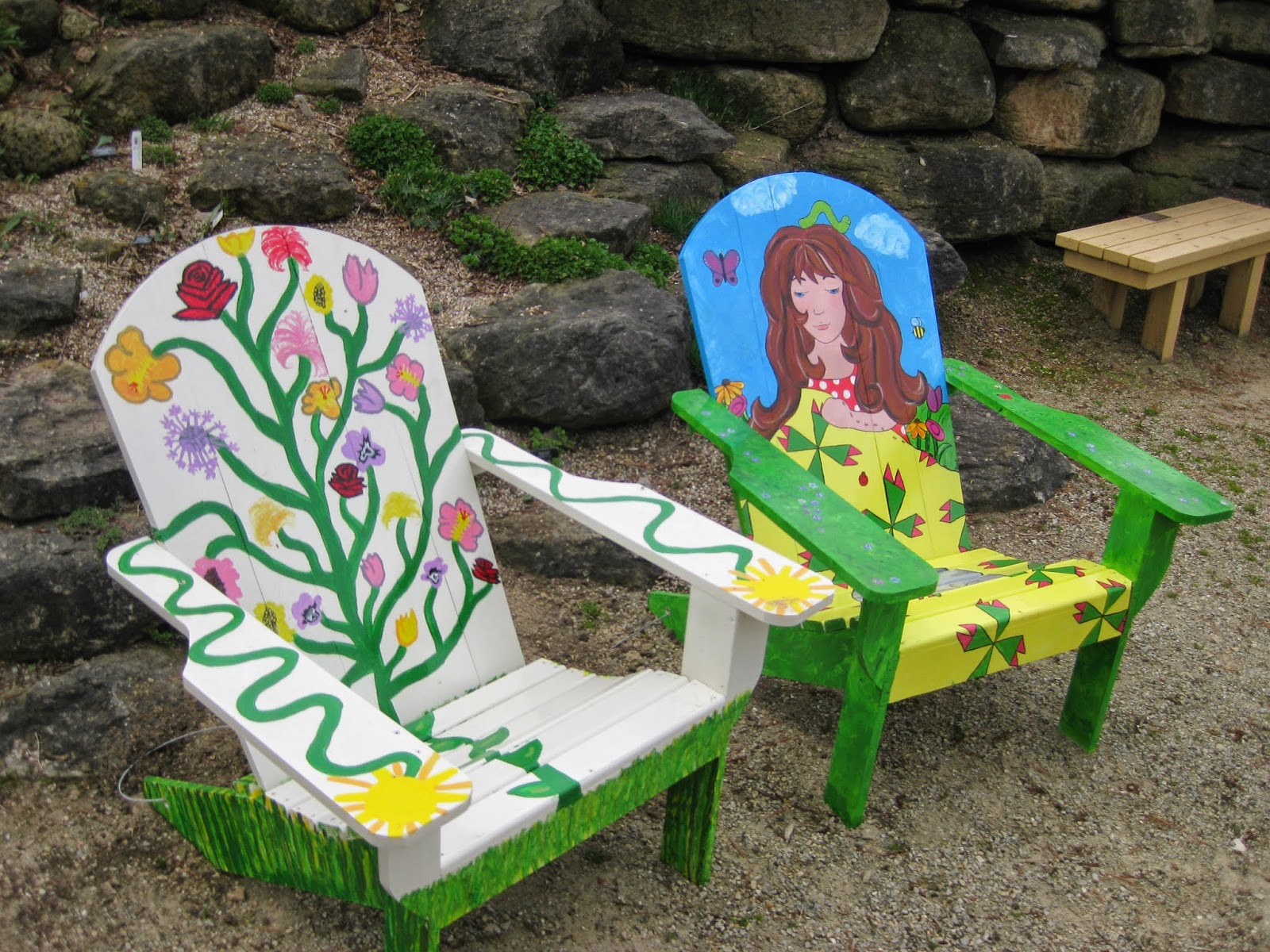 two of twenty-five awesomely decorated Adirondack chairs featured as part of our 2014 Garden Art exhibition which also promotes our 25th Anniversary!