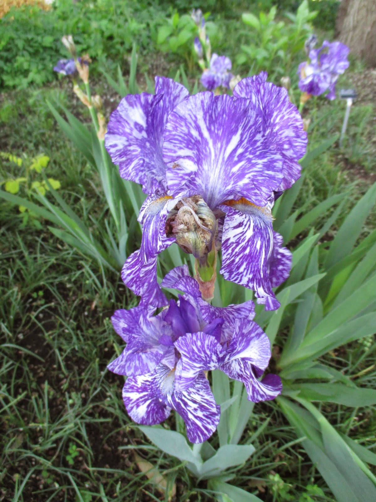 I spent the morning keeping ahead of six planting projects and was lucky to do so! I also made a run for more plants and we'll have plenty to install over the remainder of the week and at our Saturday Volunteer Workday (June 7, meet at 8 am at the Parker Education Center). Larry checked water features, ran irrigation, push mowed, weed whipped and watered. Pat also push mowed, cut back bulb foliage and helped with some other projects. Big John did quite a bit of rototilling and bed preparations as well as watering and preparing space for a new bench. Cindy tidied multiple areas and moved on to a significant planting project with Cheryl who also had areas to tidy as well prior to planting. Janice worked on planting more of the Thomas Jefferson Collection, did the cutting display, met with our VIP guests, gave them a tour and also watered among other duties. I brought back more plants to replace those I took out of the holding yard earlier for planting! More plant shots below! Above is 'Batik' iris (Iris germanica) which is beautiful and hard to photograph!