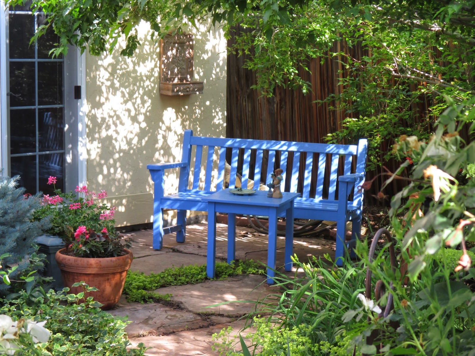 woolly thyme walk at the second home garden as was the neat alcove with blue bench seen directly below