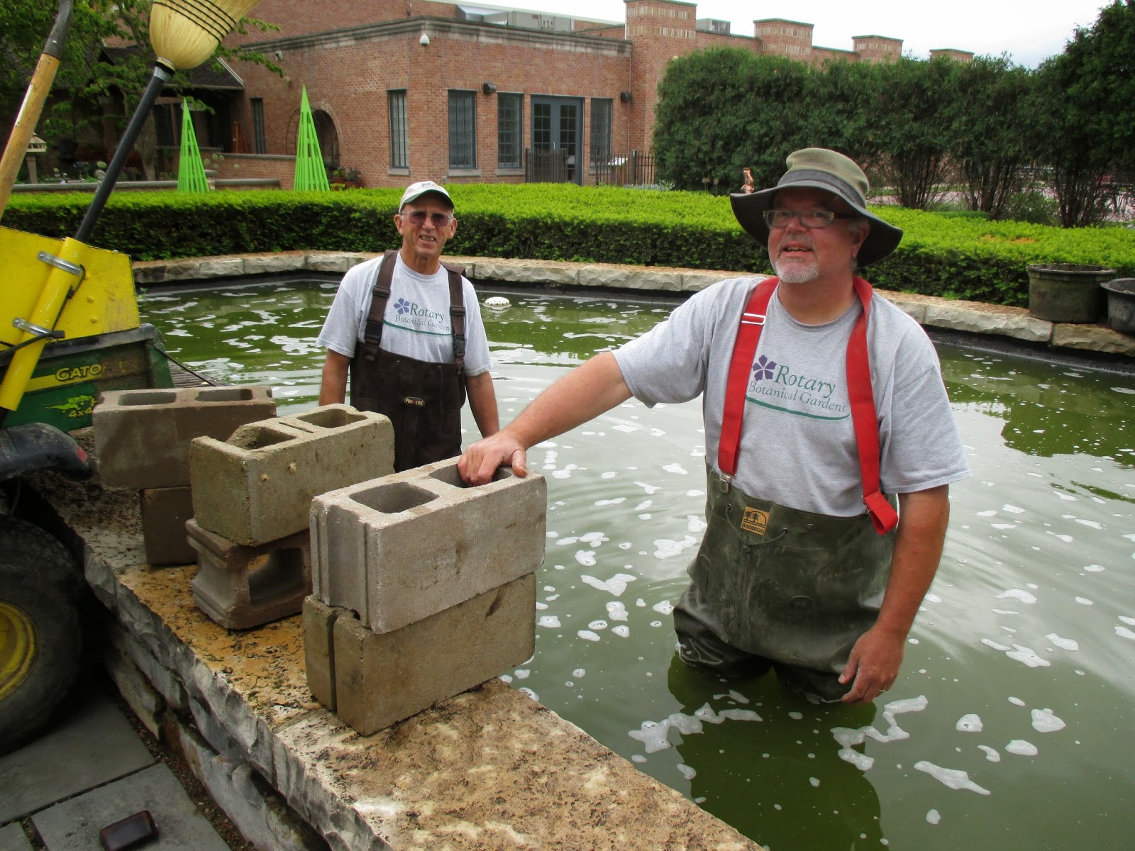 We thought we'd only have a morning drizzle but that drizzle continued throughout much of the day and really wasn't unwelcome (although consistent!) While this precipitation spared us most watering duties, it allowed us to accomplish much outside in our rain coats. Above is the vivid foliage of the tricolor European beech (Fagus sylvatica 'Roseo-Marginata') which is simply beautiful this time of year. The pink variegation remains throughout the season but fades to a light pink with the summer heat. Our grounds crew kept busy and we did see some visitors out in the gardens including participants of our very popular Story & Stroll program. Terry worked on repotting water lilies (Nymphaea sp.) and later, he and Big John installed them out in the koi pond (see further below) and in other water features. This was no small feat and the boys had their exercise. Big John also went mobile and picked up plants, hauled out cannas for planting and had some other smaller tasks..as did Terry. Pat hauled, staged and organized plants in our yard, did some pruning, shrub planting and other duties. Cindy did some indoor work this morning and shifted outside for some container planting in the French formal garden. Cheryl spent time tidying an area that certainly benefitted from her attention. She also did some indoor work and helped unload our incoming plants. I actually did some planting today, hauled out plants and caught up on various tasks as well. Below are some additional shots from today.