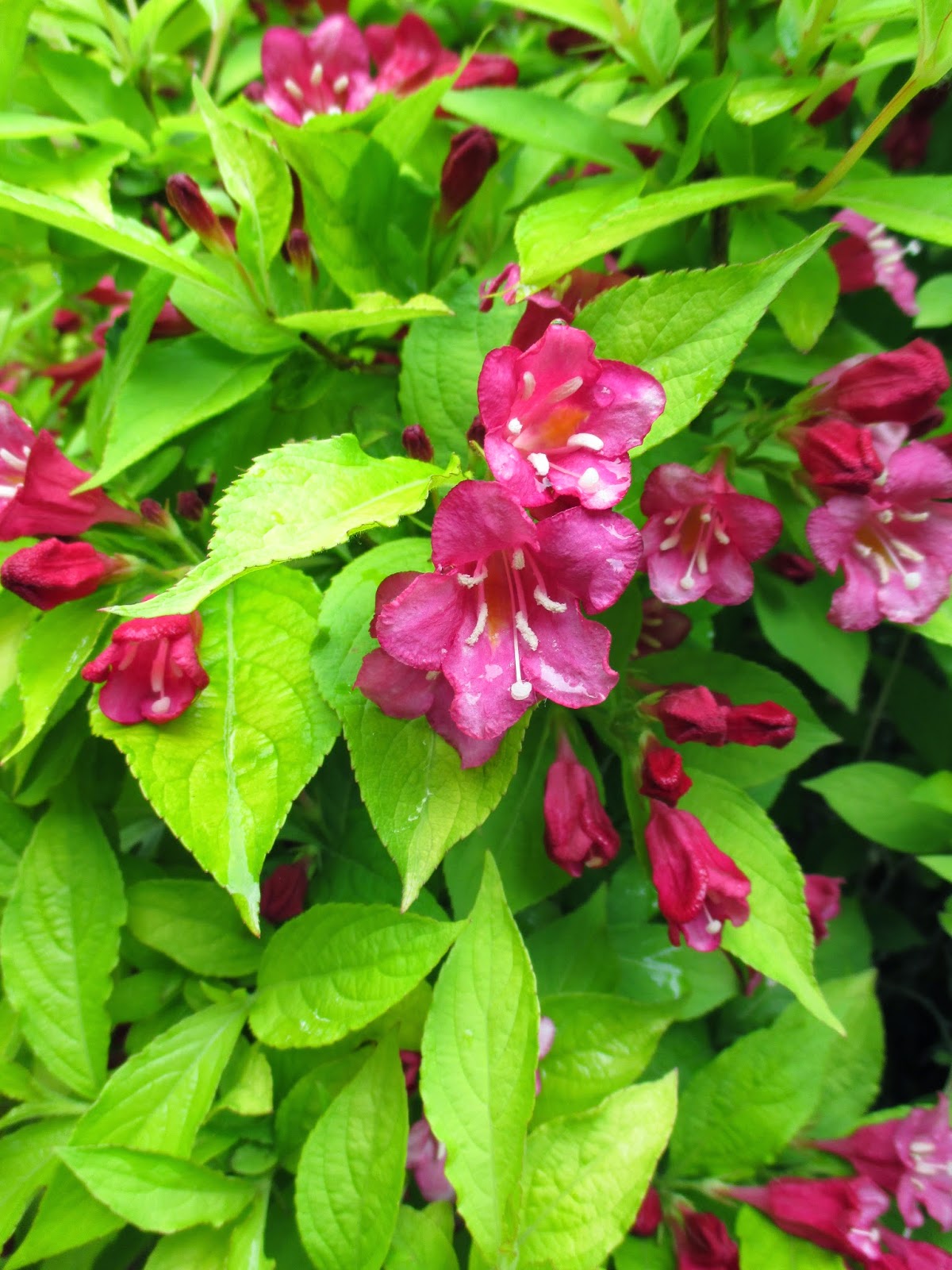 'Briant Rubidor' golden weigela (Weigela florida) in bloom