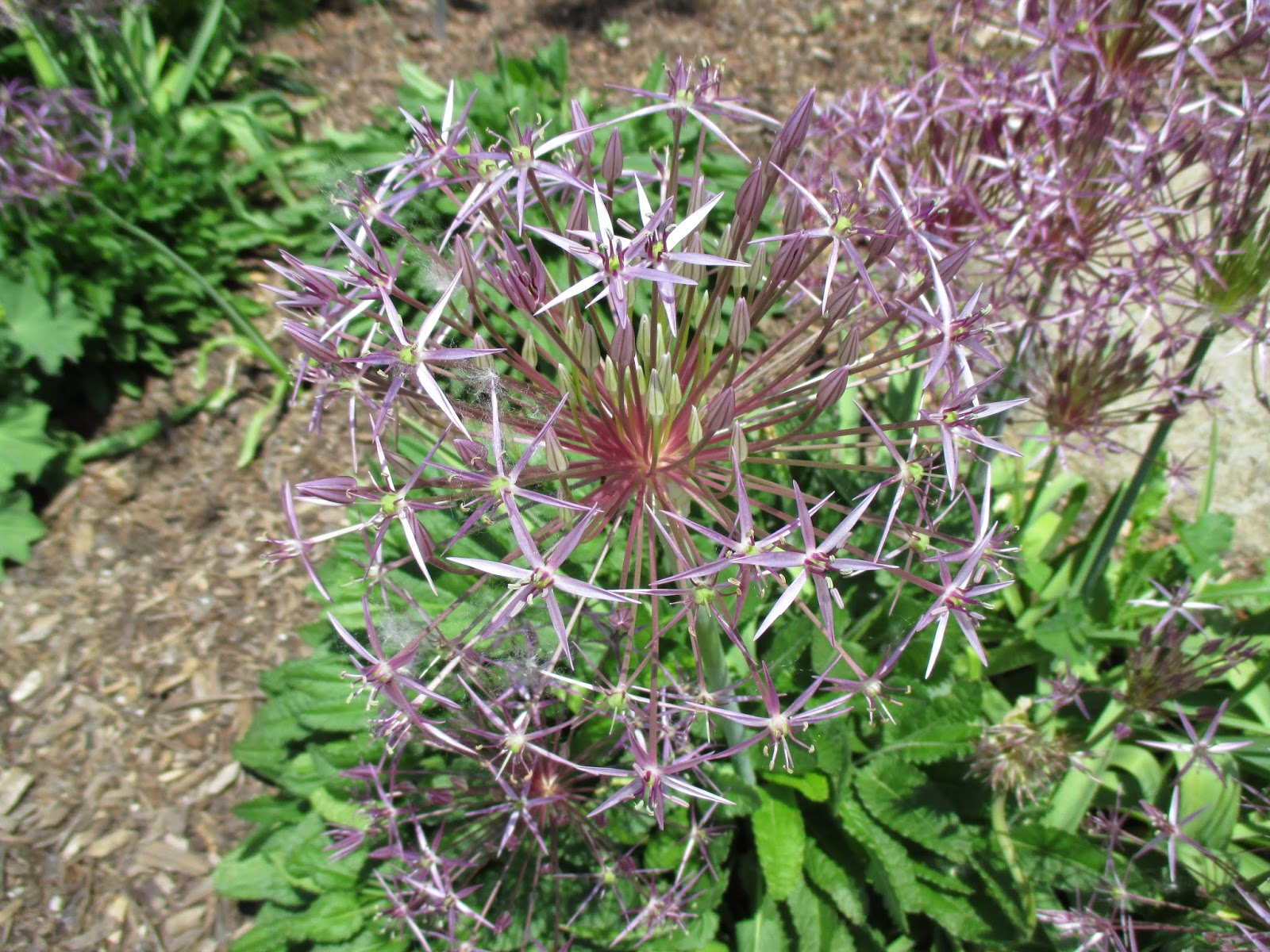 Thursdays continue to impress me as one of our busiest and most productive days of the week. I'm glad I lay out plants in advance so newly arriving volunteers can start planting right away. I've prided myself on keeping ahead of the planting troops (just barely at times!). We had a great showing of volunteers on a beautiful day and the gardens were busy with tours, Youth Education Programs and general visitors. Above is the red-leaf rose (Rosa glauca) blooming with bright pink, single blossoms over blue foliage. This is one of my favorite roses despite the occasional seedling that pops up in proximity to the mother plant. I was glad to have my camera with me all day to capture the beauty of the gardens and many of our hardworking volunteers. Below are some additional shots from the gardens today.