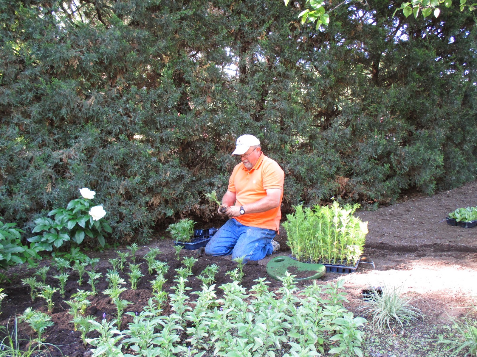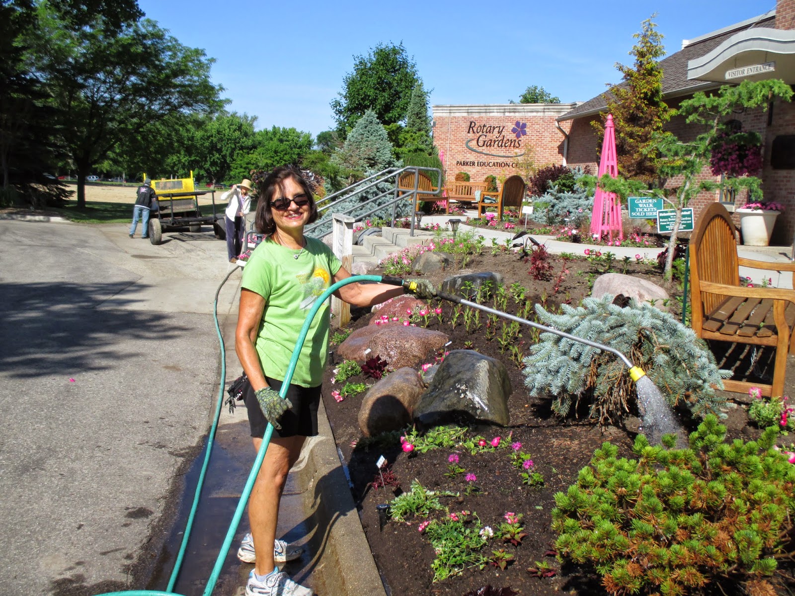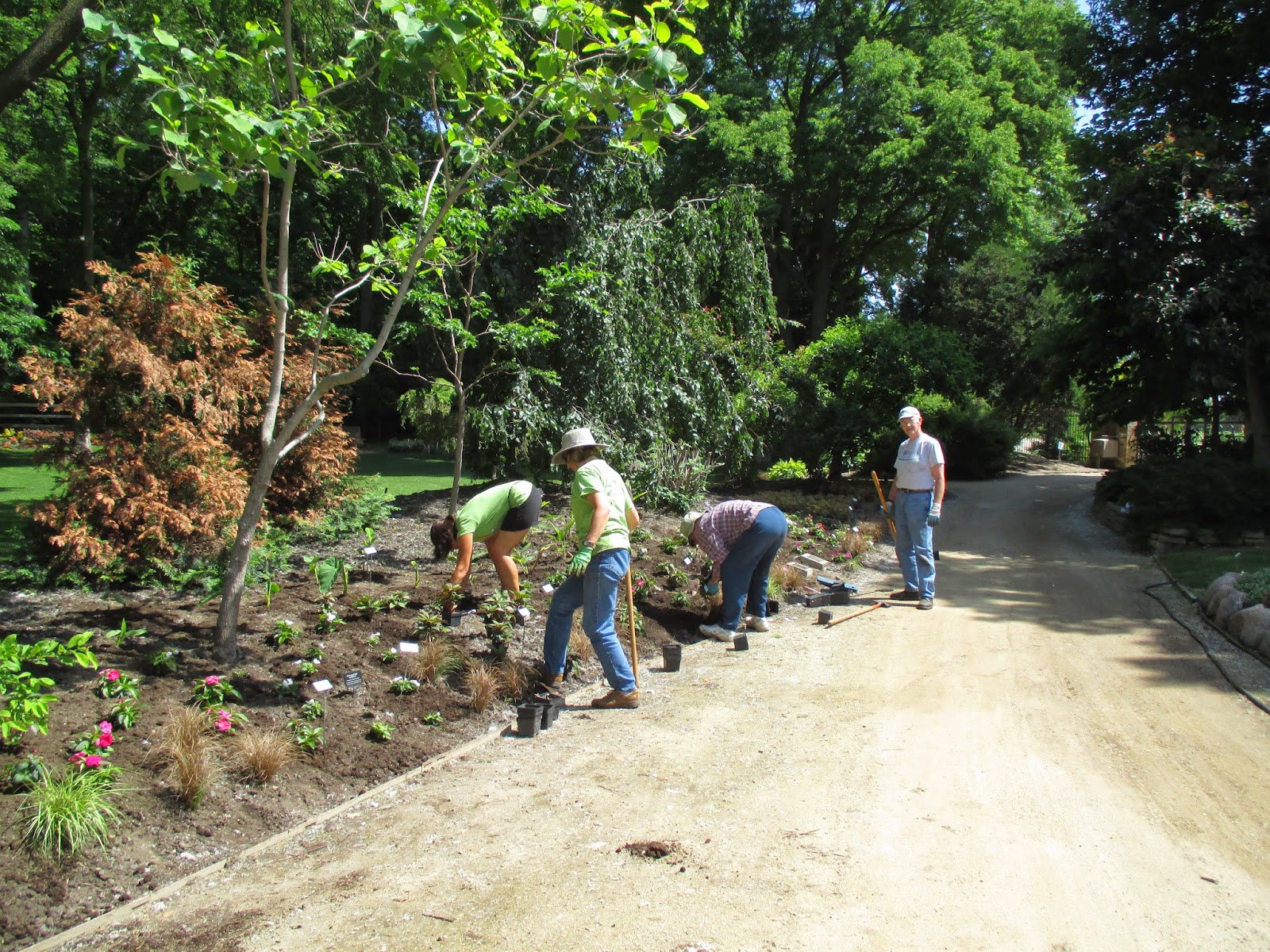 Our fifth of five spring Volunteer Work Days went smoothly again with much accomplished in many areas. The Morning Rotary was hosting their annual Pie Ride at Lion's Beach which made for a congested morning in terms of travel to and from the gardens but we had a great turnout of volunteers regardless. We planted five different areas including the front of the Parker Education Center (seen above). We also did quite a bit of weeding as we planted with a strong focus in the reception garden for such weeding efforts. Above is Christy Marsden, one of our volunteers and the Rock County / UW-Extension Horticulture Agent, working on purslane (Portulaca oleracea) removal. UGH. Lots of progress though. A big thanks again to Janice, Big John and Larry for helping facilitate the morning. Thanks to our volunteers Christy, Del, Tina, Hal, Doris, Ron, Bev, Vera, Kim, Barb, Lee, Marilyn, Maggie, Chuck, Mary W., Roy, Eva, Gary, Keith, Jodi, Mary D., Bill O., Beth, Bonnie, Patrick, Patrick's friend and many others. What a great day for weather too!