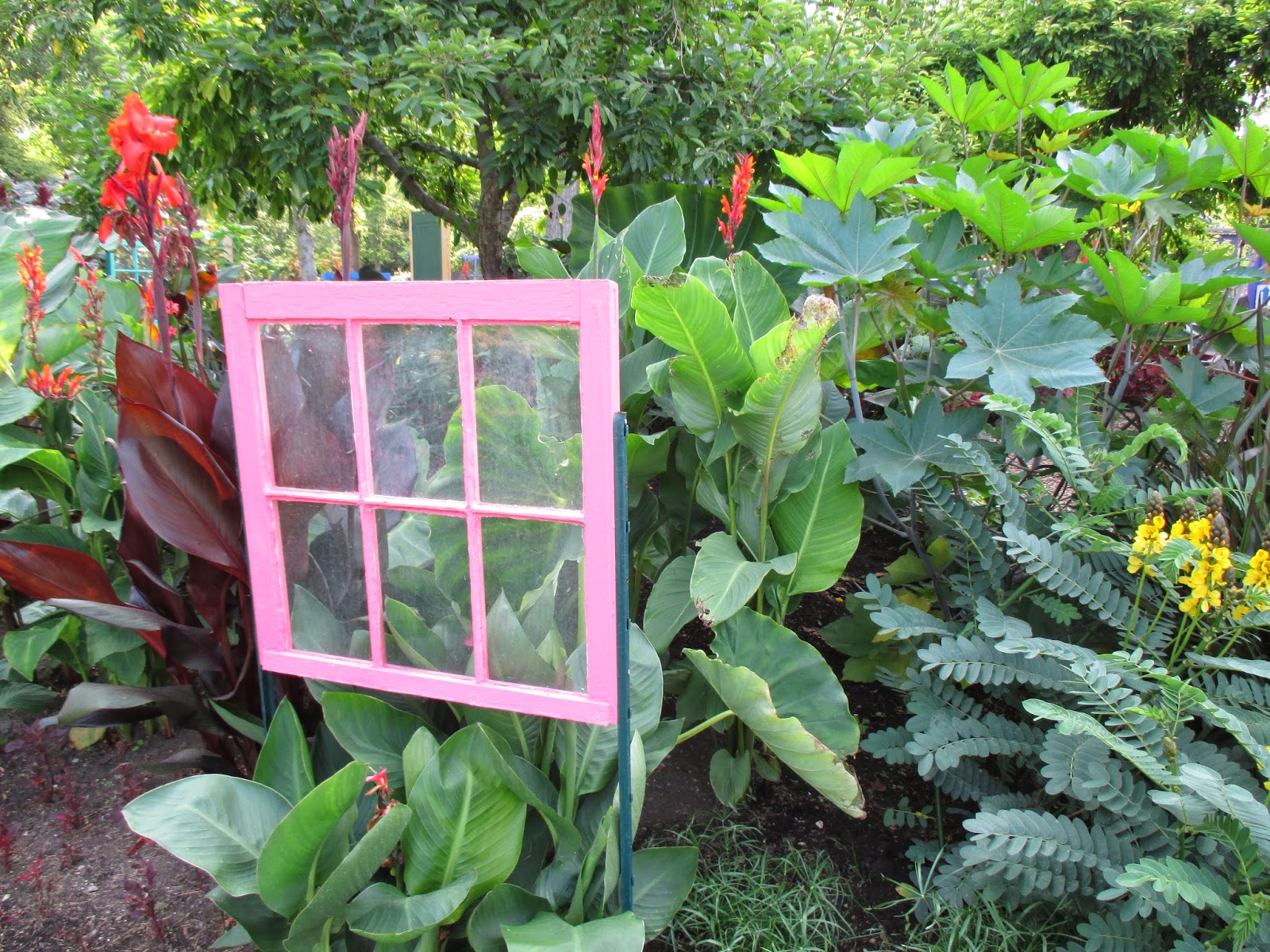 While we haven't had the heat to encourage the Jungle Garden (seen above and below) as much as I would have liked, the plants are still filling in steadily! It's hard to believe that we were painting these doors and windows only five months ago and we are now enjoying seeing visitors explore these lush spaces. If we have a warm August, we should see significant growth with these areas becoming "jungle thickets"! We had another beautiful day around 80 degrees F and the morning was just the perfect temperature for gardening. The grounds staff and volunteers had no shortage of tasks and it continues to be one productive day after another. We're finally getting a handle on the weeds and while we'll never be "weedless", we're finishing some of the challenging areas and will continue to primp as time (and the number of helping hands) allows! More photos from the Jungle Garden this morning can be seen below.