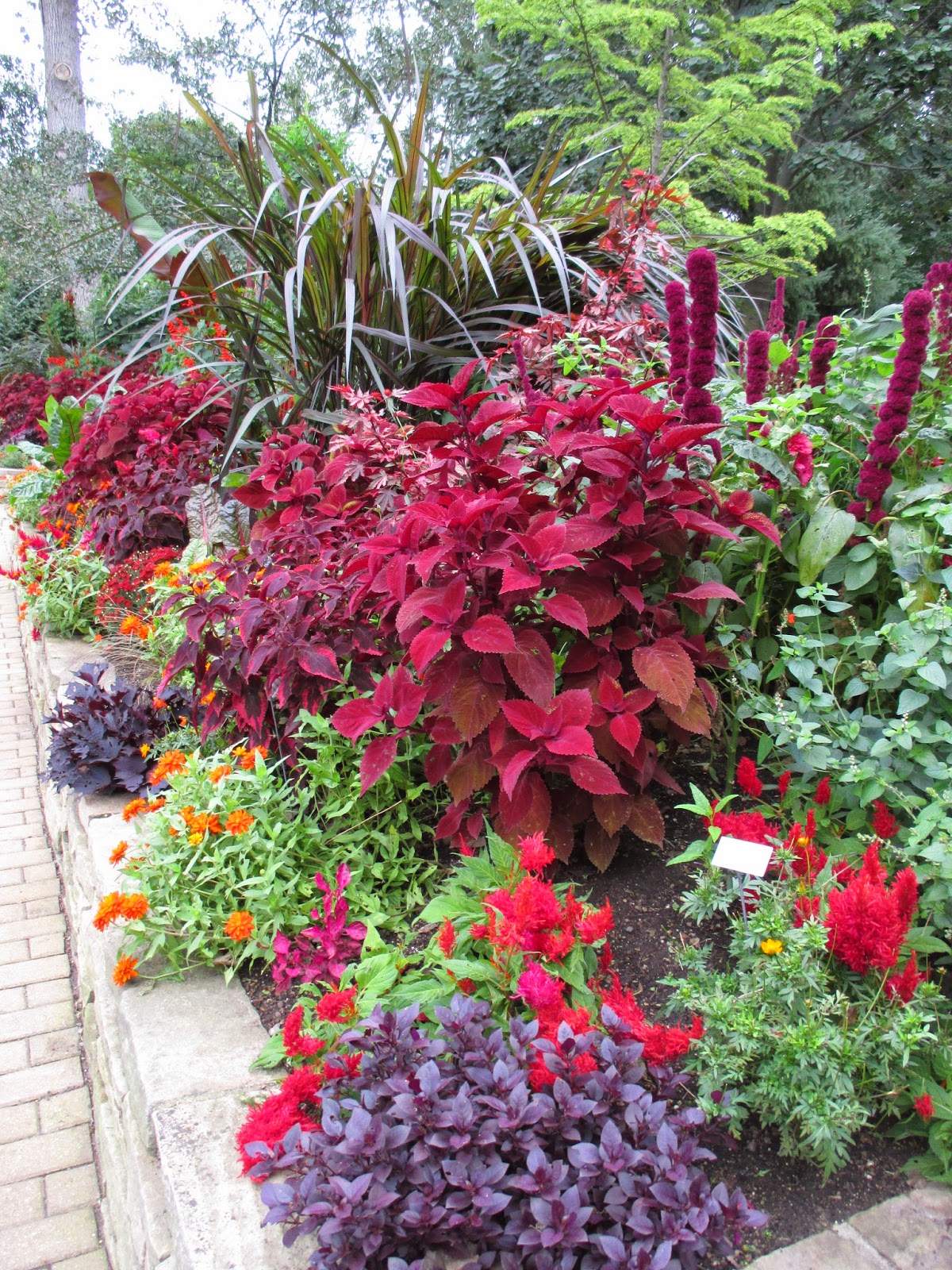 Dr. Gredler's apparel above (including long underwear) should clue you as to the weather this morning. The high was around 50 degrees F with a cold breeze and afternoon drizzle; certainly very "fall like" for everyone outside. The Fall Plant Sale Extended Clearance Sale did have some patrons and we look forward to a busy Saturday morning tomorrow (9 am - 2 pm, 15% off everything). Special thanks to Polly, Joy, Janice, Bev, Mary W. and Gene B. for helping facilitate the sale today. I'm glad we had a relatively dry first portion of the day with some great productivity from grounds staff and volunteers. I was able to tour the gardens this morning and the color is extremely vivid on this cloudy day and the tropical plants all withstood another cold evening around 40 degrees F.! Below are some additional images from today.