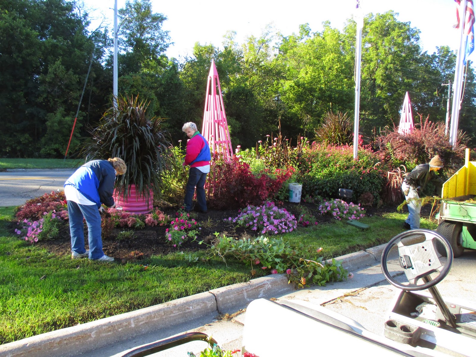 It was a great day to be outside and the grounds staff (Cindy, Cheryl, Big John, Janice and Larry) all had plenty of tasks. Above is the beautiful and textural 'Aureola' golden Hakone grass (Hakonechloa macra) which is a dynamite grass for part shade. Cindy and Cheryl did a nice job primping various garden areas and both had watering duties as well. We missed the rain yesterday and while things aren't drying out yet, we'll keep up with watering as needed. Big John converted containers with new mums, push mowed, pruned birches (Betula sp.) and had myriad other tasks as well. Janice had some gardening projects but focused most of her efforts today on packing away Fall Plant Sale signs, labels, etc. which is no small task. Larry continued running irrigation, push mowed and even started bringing out Holiday Lights Show displays for testing. I toured the gardens and had some post plant sale involvement as well. I'm also keeping up with desk work, Holiday Lights Show preparations and preparations for looming presentations as well.