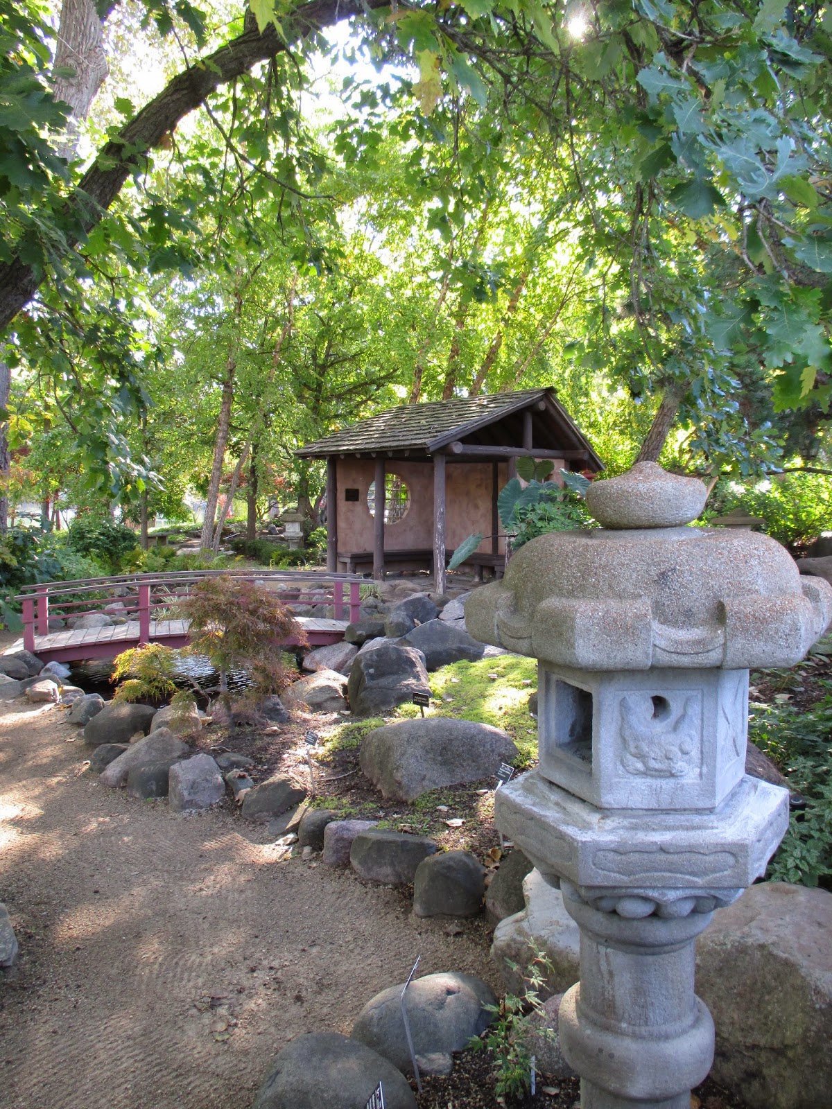 the Azumaya structure in the background looks great with Japanese lantern in the foreground in the fern & moss garden