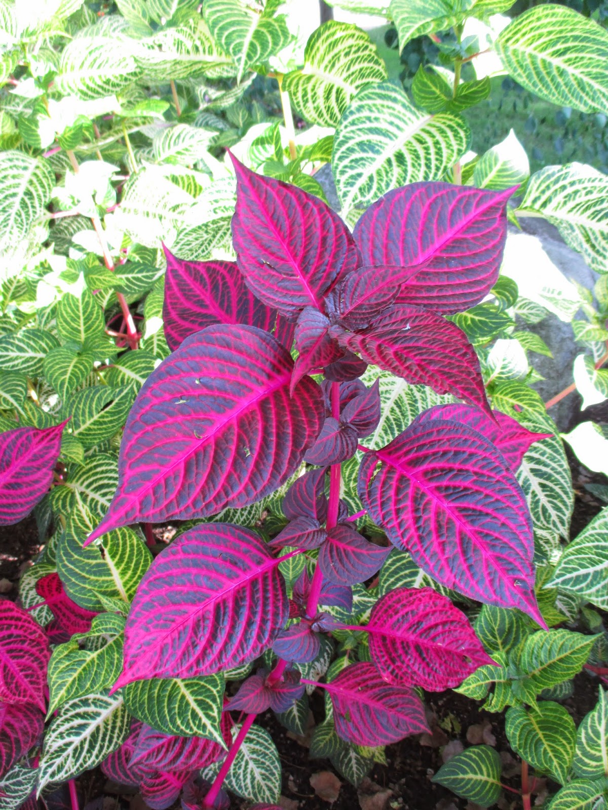 'Blazin' Rose' bloodleaf (Iresine hybrida) with 'Blazin' Lime' surrounding it (same species) - tropicals