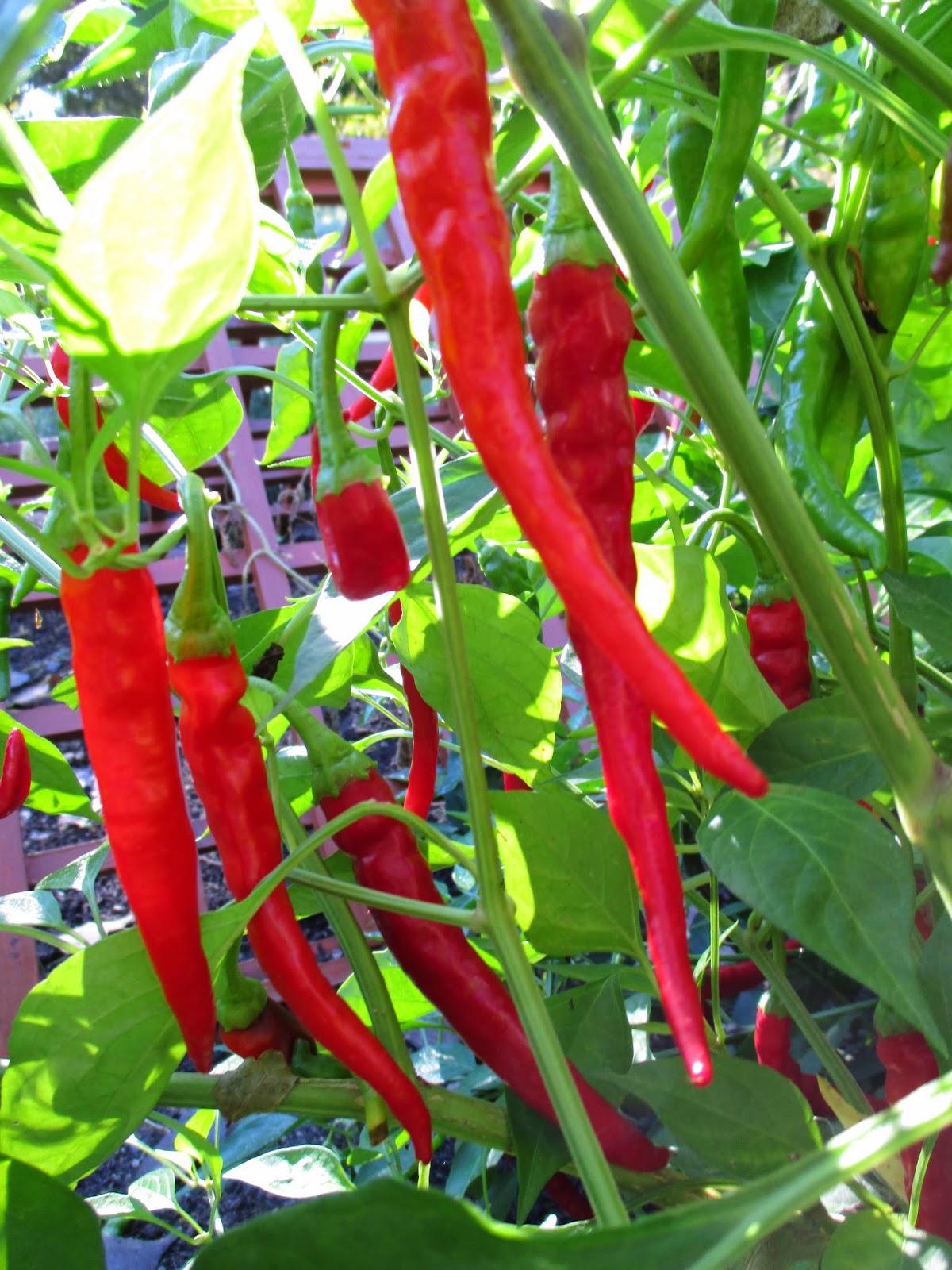 'Long Red Slim Cayenne' hot pepper (Capsicum annuum) in the Thomas Jefferson Collection (see sign below)