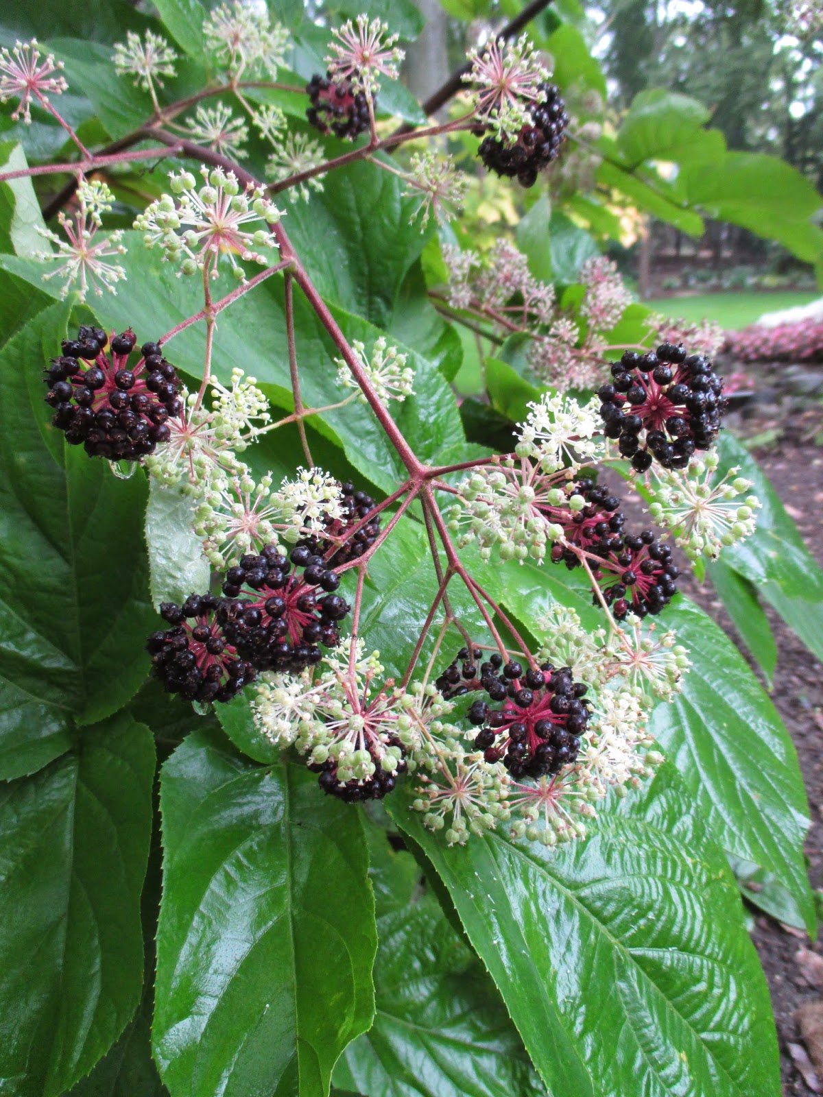 the fruits of the Japanese spikenard (Aralia cordata) are coloring up nicely - perennial