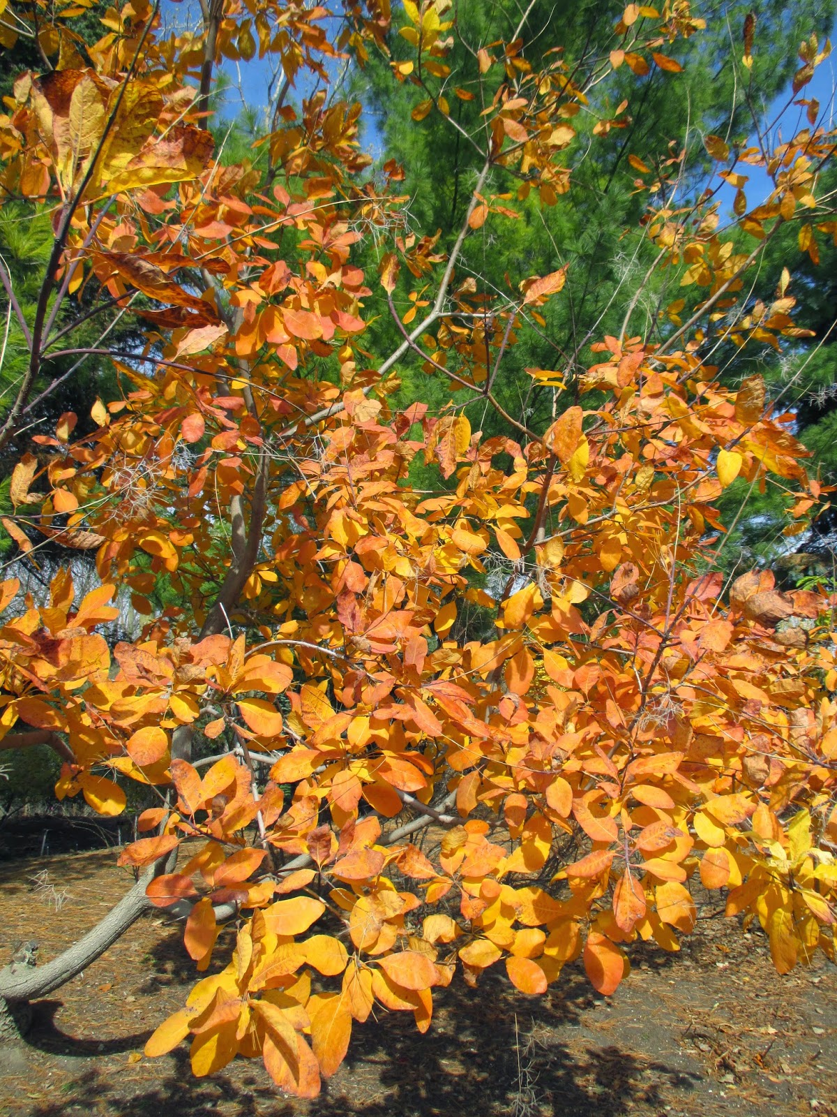 intensifying orange fall color on Japanese stewartia (Stewartia pseudocamellia) - woody tree