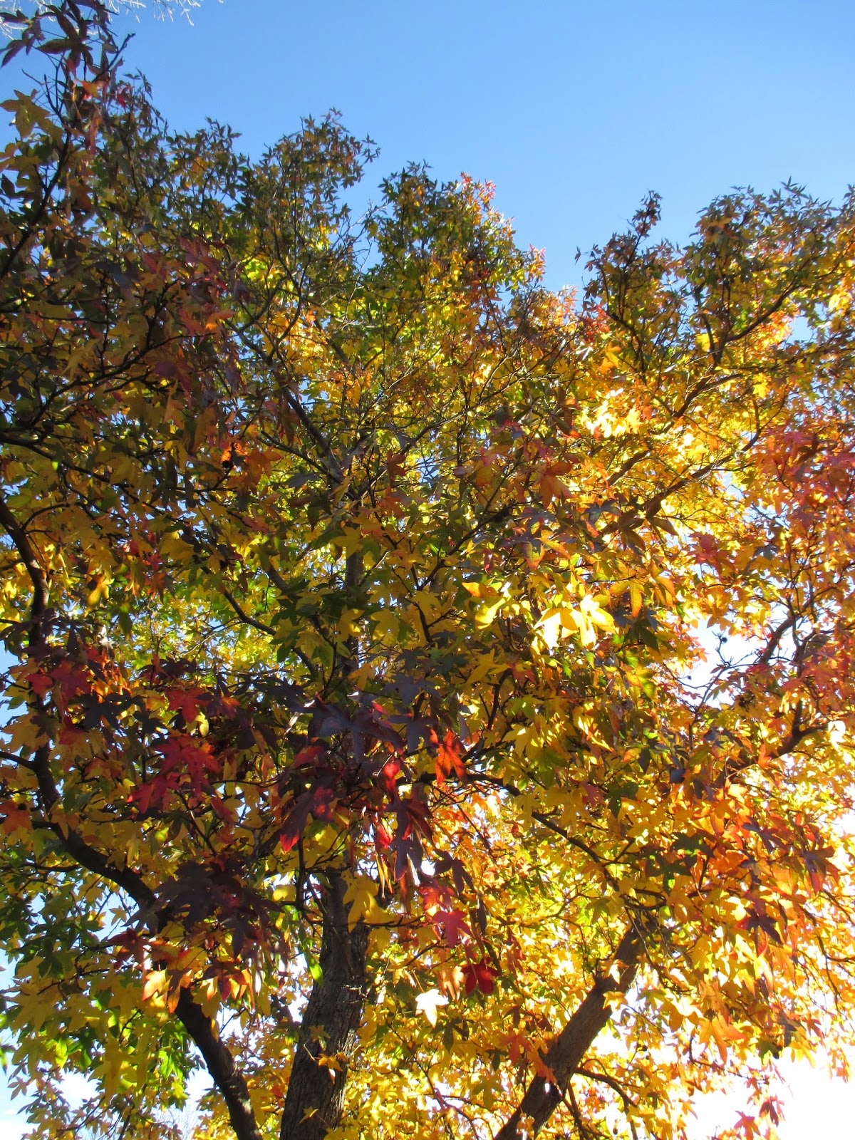 excellent fall color on sweet gum (Liquidambar styraciflua) - woody tree