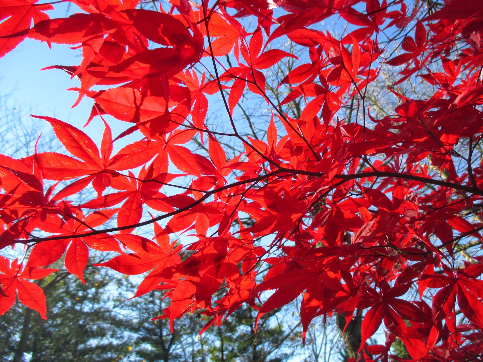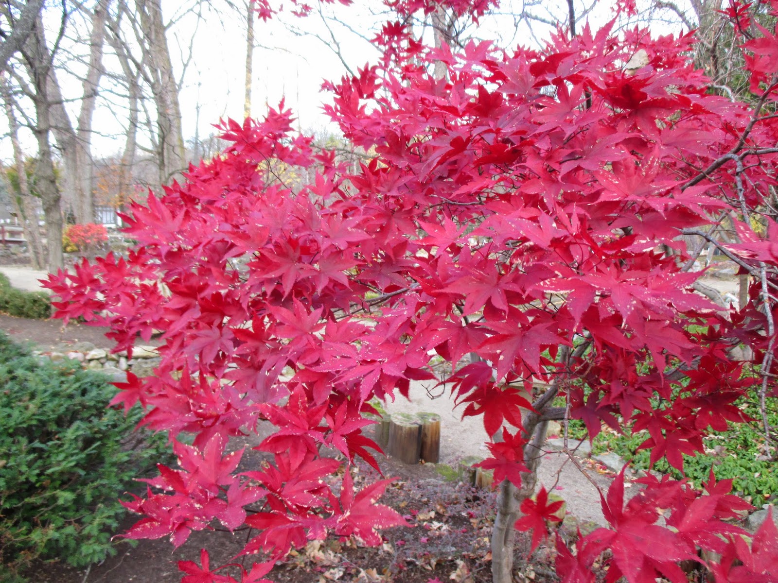 intense red fall color on 'Bloodgood' Japanese maple (Acer palmatum) - woody tree