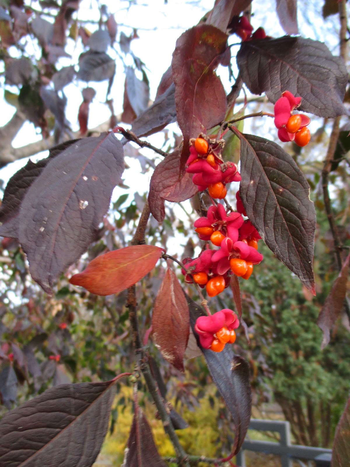 fruiting structures and fall color for the Eastern wahoo (Euonymus atropurpureus) - woody tree
