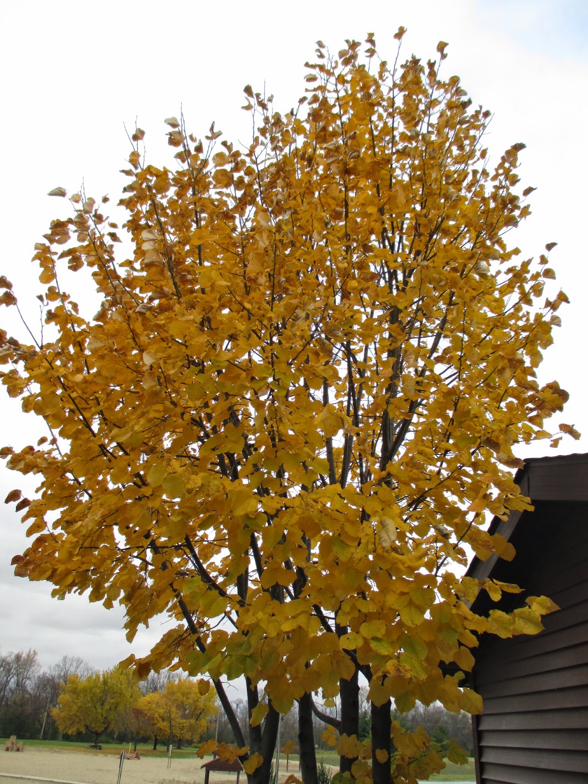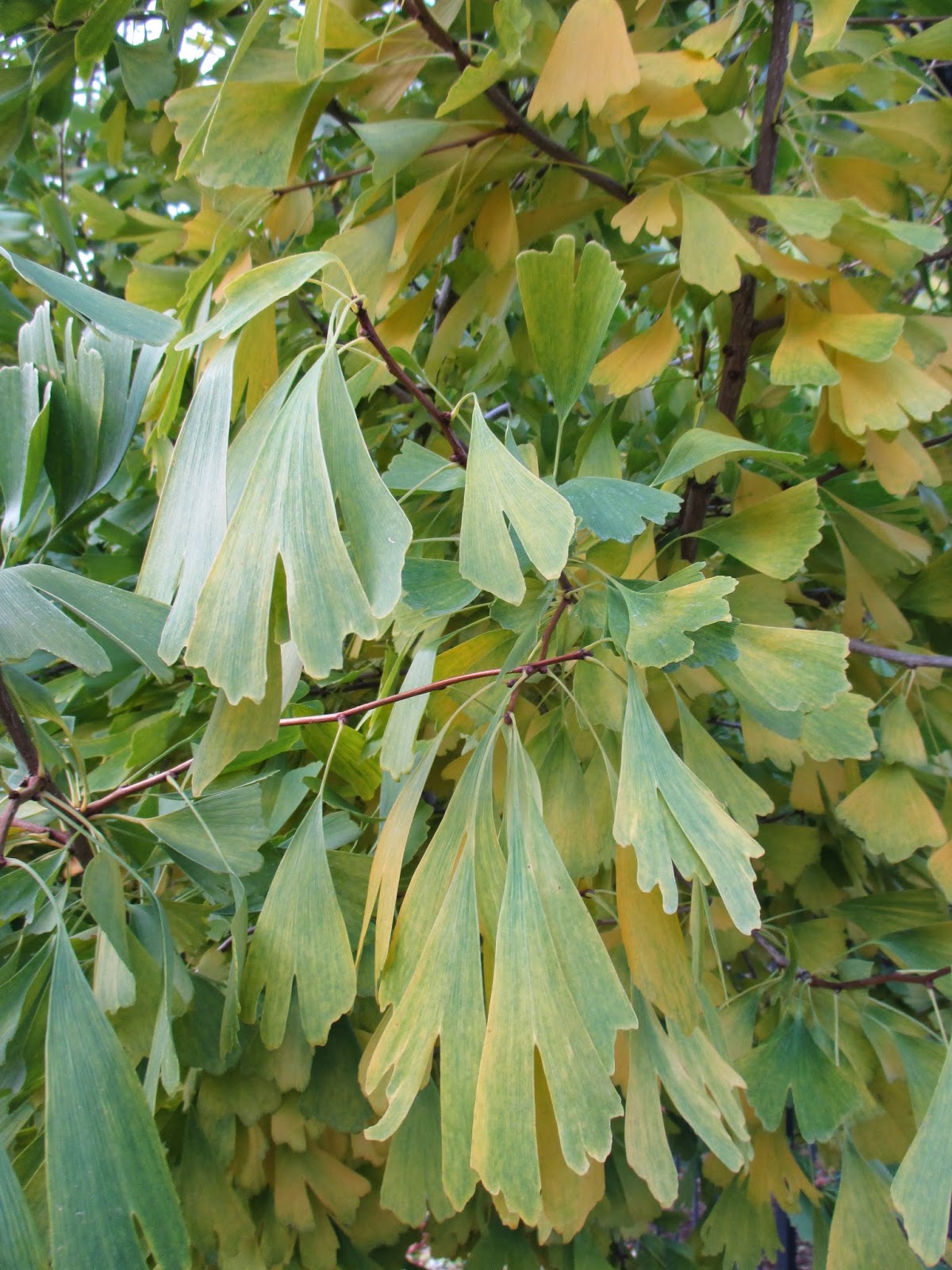 start of fall color on the 'Saratoga' ginkgo (Ginkgo biloba) - woody tree