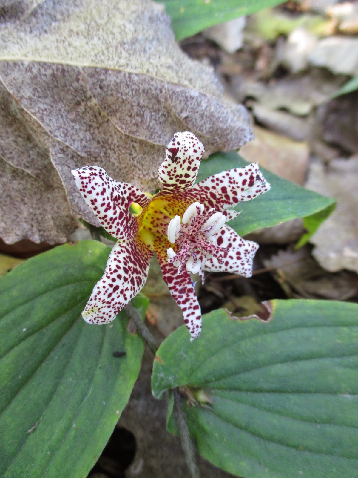 One of our many toadlilies (Tricyrtis sp.) continues to bloom well this month