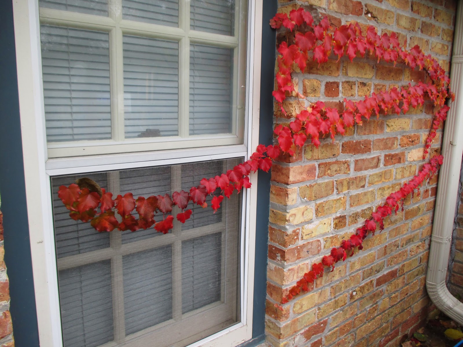 English ivy (Parthenocissus tricuspidata) stretching out with fall color - woody vine