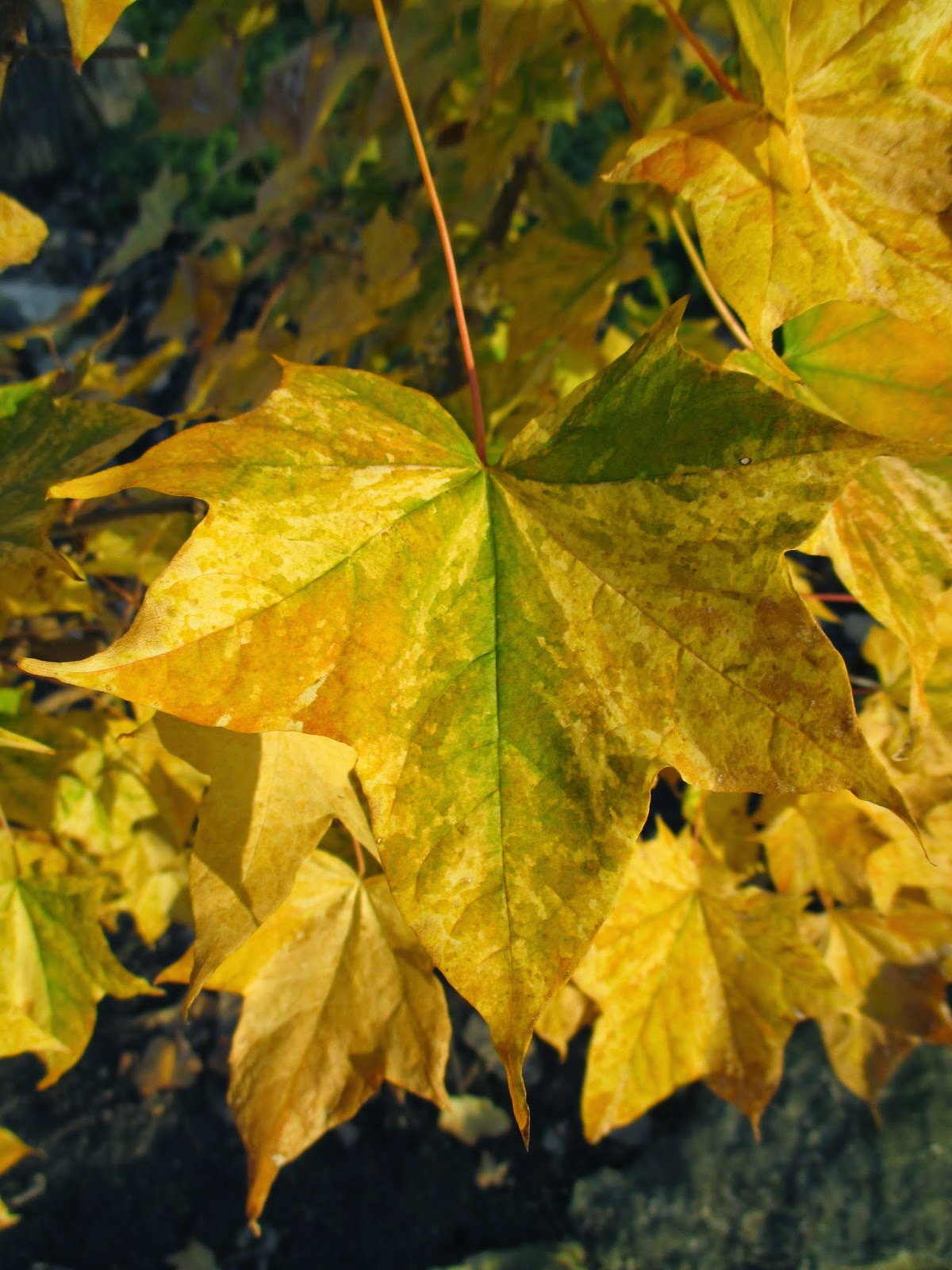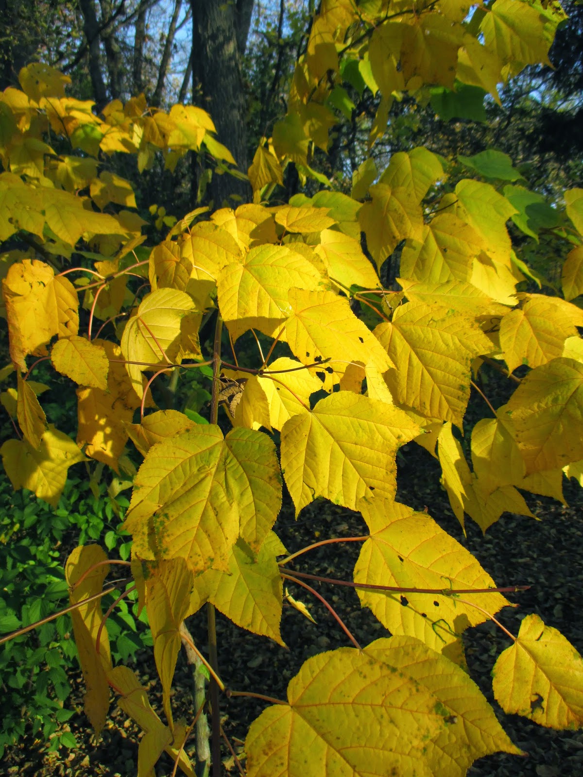 yellowing fall color of "skeleton-leaf" silver maple (Acer saccharinum 'Born's Gracious') - woody tree