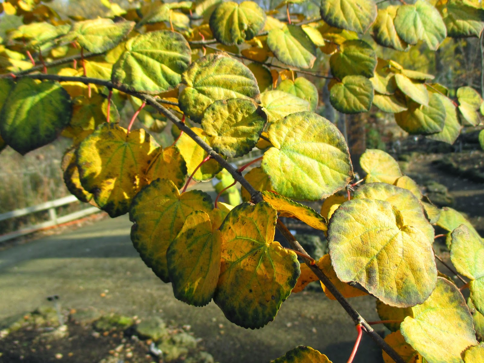 fall color on 'Red Fox' katsuratree (Cercidiphyllum japonicum 'Rotfuchs') - woody tree