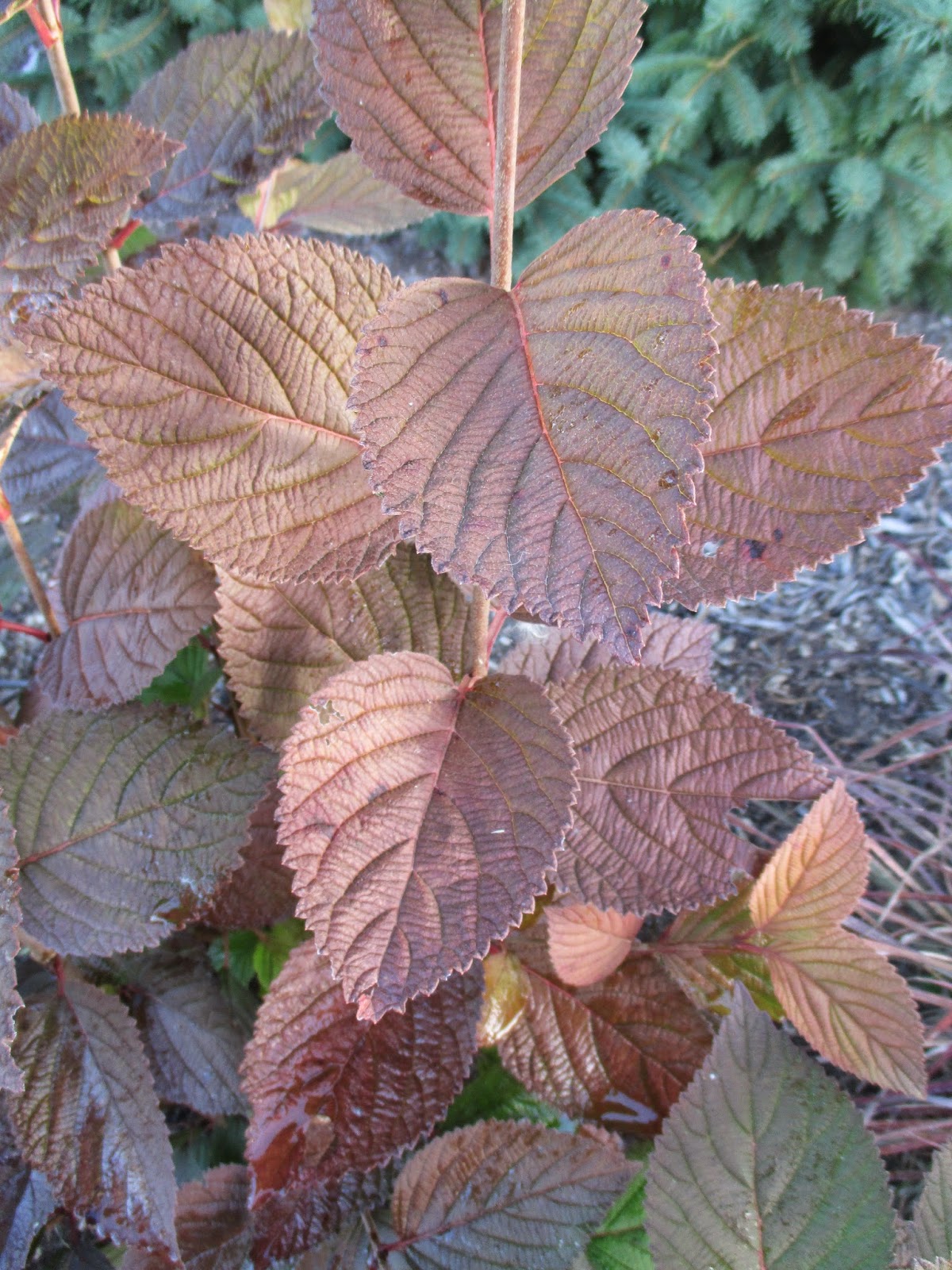 fall foliage tinting on 'Copper Ridges' doublefile viburnum (Viburnum plicatum var. tomentosum) - woody shrub