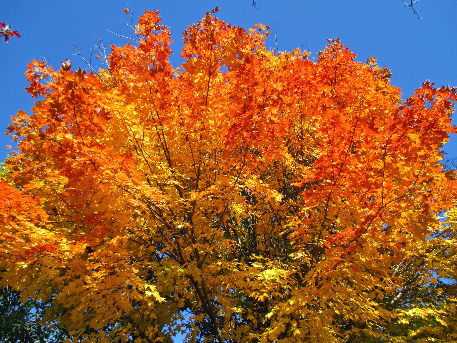 start of fall color on the shady side of a Korean maple (Acer pseudosieboldianum) - woody tree