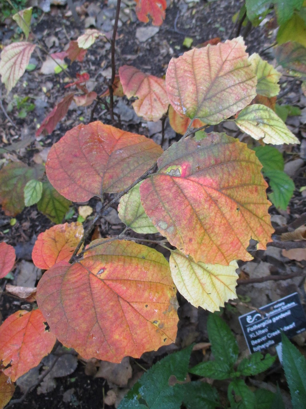 start of fall color for the Beaver Creek witchalder (Fothergilla gardenii 'KLMtwo') - woody shrub
