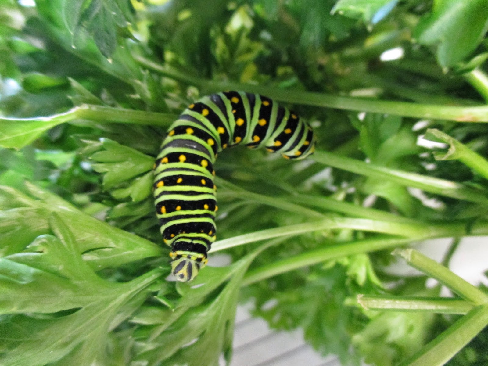 The grounds staff kept busy with a wide range of tasks today. Big John and Terry had duties involving running irrigation, watering, etc. but spent most of their time working on Holiday Lights Show (HLS) set-up. John and Terry were also a huge help with hauling back potted tropicals for storage (see directly below). Janice helped me with the Oakhill Christian volunteers and moved on to other duties in the afternoon. She is very adept at keeping everyone organized and on task! Cindy had tidying duties in many areas, watered the yard and spent the bulk of her time further tidying up the "Pollinator's Paradise" in the Nancy Yahr Memorial Children's Garden. She also found a cool swallowtail caterpillar doing some late season munching on parsley (Petroselinum crispum) in that garden (second photo down)! Pat M. spent all of his time on lights repair for the HLS. We ran out of carts for him to get out in the gardens much but he has the patience of a saint with these oftentimes tedious repairs! Further below are some recent plant images from our Autumn garden.