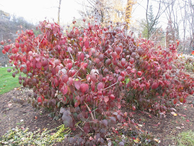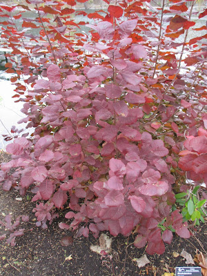 nice foliage color still on the 'Royal Cloak' smokebush (Cotinus coggygria) - large woody shrub / small tree