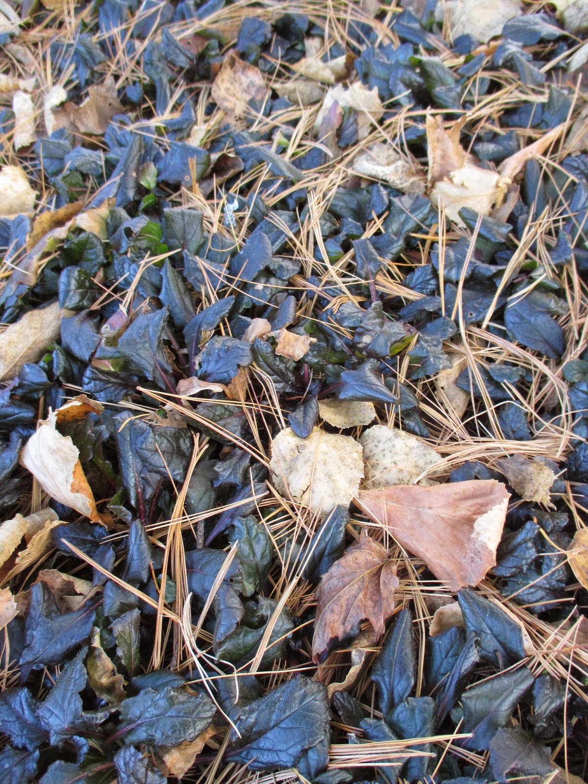 bugleweed (Ajuga sp.) looking colorful with pine needles - perennial