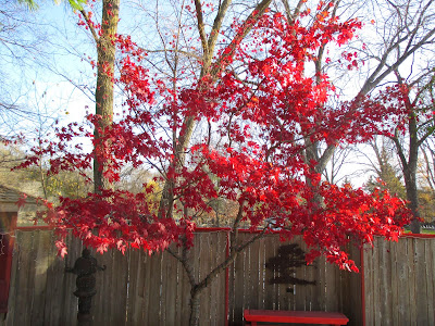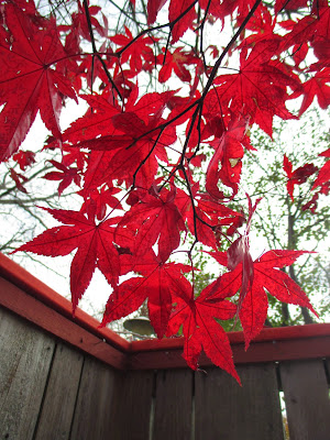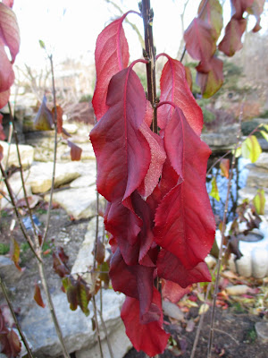 this 'Bloodgood' Japanese maple (Acer palmatum) is our last to have leaves and still looks showy - woody tree