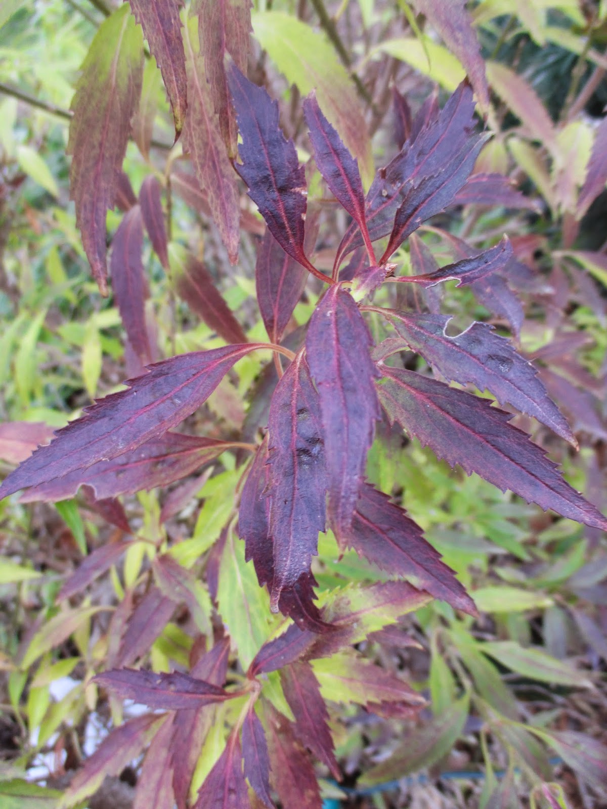fall color on Citrus Swizzle forsythia (Forsythia viridissima 'MckCitrine') - woody shrub
