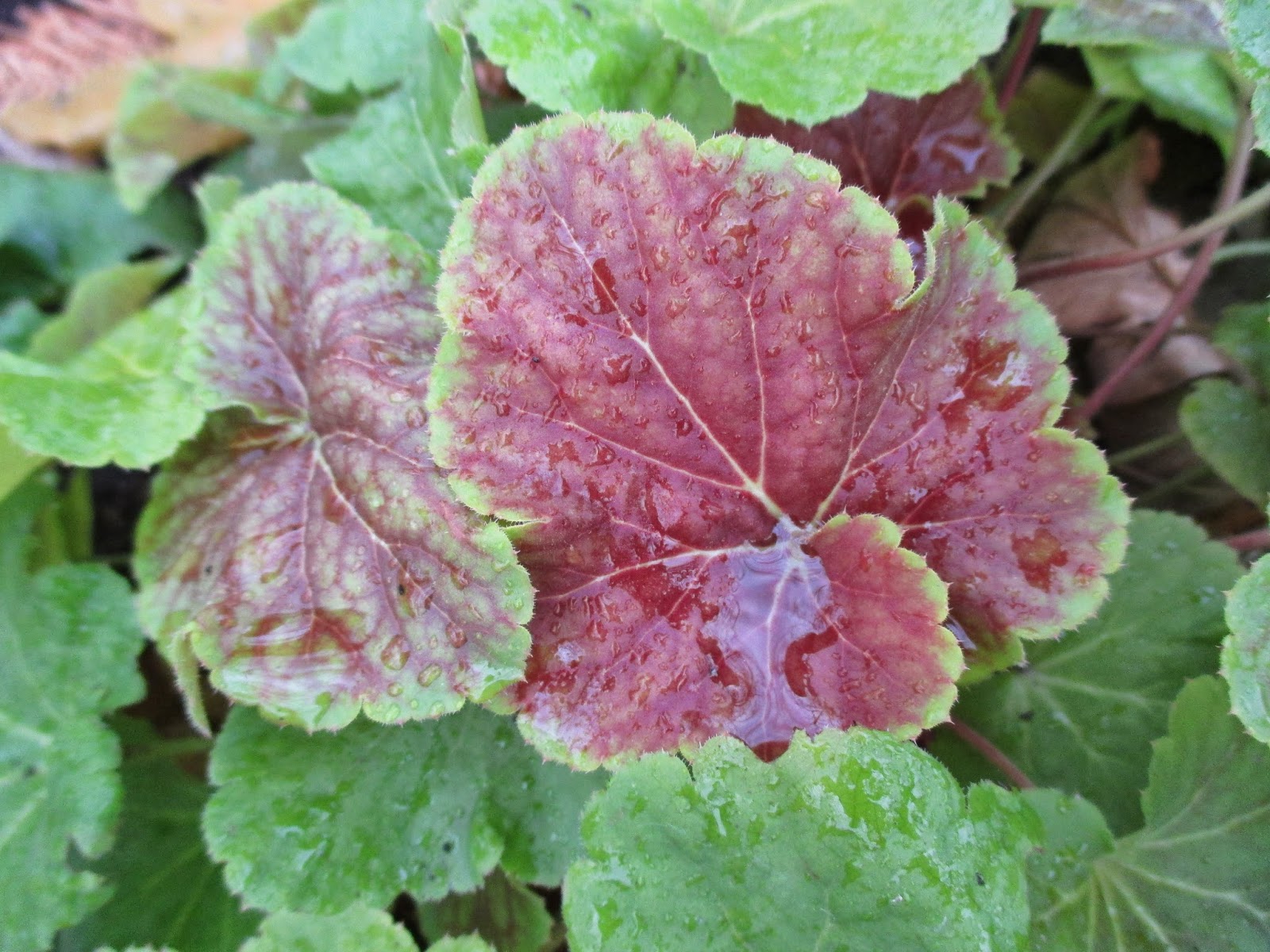 The grounds staff had a very productive day. Larry put out the remainder of our arches, did some pruning and bounced between a wide range of projects including helping many others as well. Big John was back and forth and did an awesome job getting out more displays, lights and other elements of the HLS. It's nice to see the yard empty of HLS displays and our lights supply dwindle as this HLS gets closer to completion. Janice helped direct the volunteers this morning, put lights on obelisks, had a meeting and kept busy with a wide range of tasks. I was "cord boy" again although my day was also interspersed with meetings, returned photo calls, etc. Below are some of the coral bells (Heuchera) still looking good out in the gardens. Don't cut them back until spring! Enjoy their color well past Thanksgiving!
