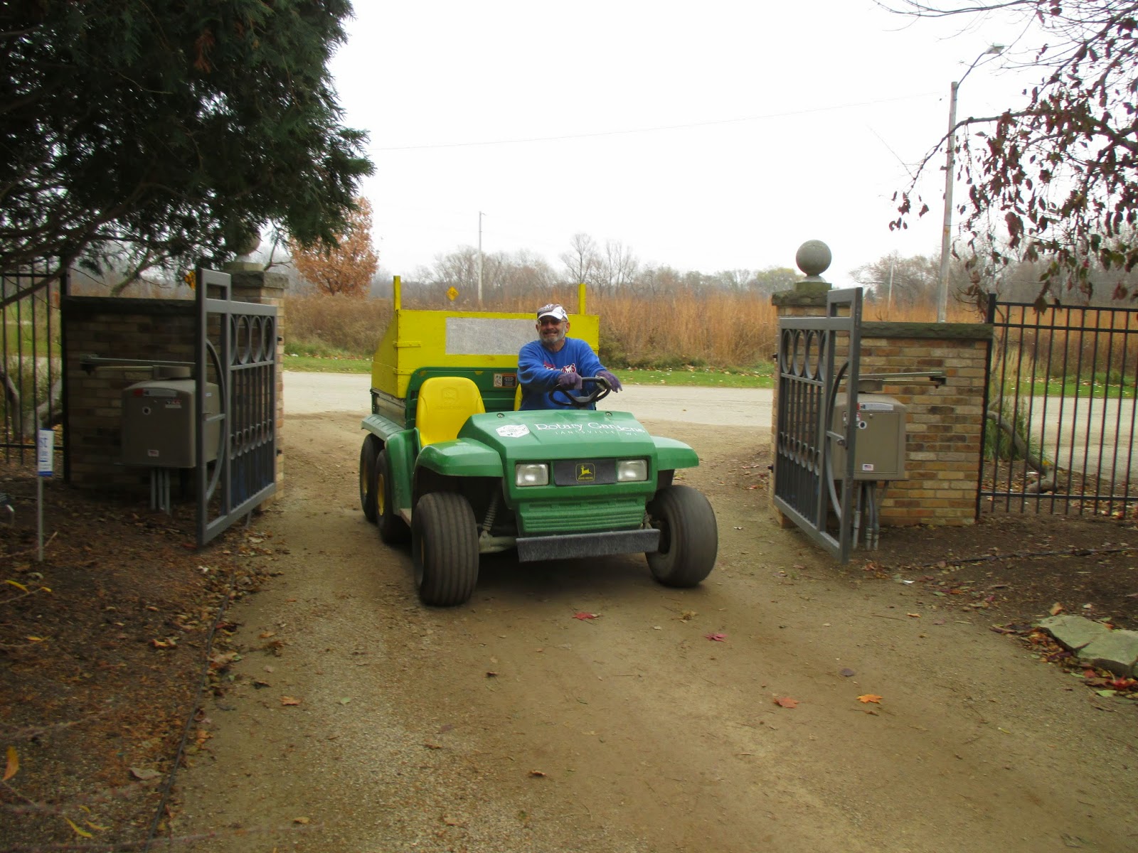 This bench quote above will have more applicability further up north in Wisconsin over the coming 24 hours with up to 18" of snow predicted in some locations! I think we'll dodge the bullet but will have some rain and possibly sleet. At the time of typing this blog, it's 60 degrees F and sunny right now and ended up being a gorgeous day! We had a great turnout of volunteers as is typical on a Monday and along with grounds staff, were able to accomplish many tasks. Our grounds staff are ending their seasonal tenures soon with Janice, Jenny and Pat already done, Terry, Cindy and Cheryl finishing this week and John and Larry continuing on for a bit. Our focus is on the Holiday Lights Show (HLS) set-up although gardening duties still exist and our volunteers are helping accommodate those tasks before the snow flies. Below are some additional images from today.