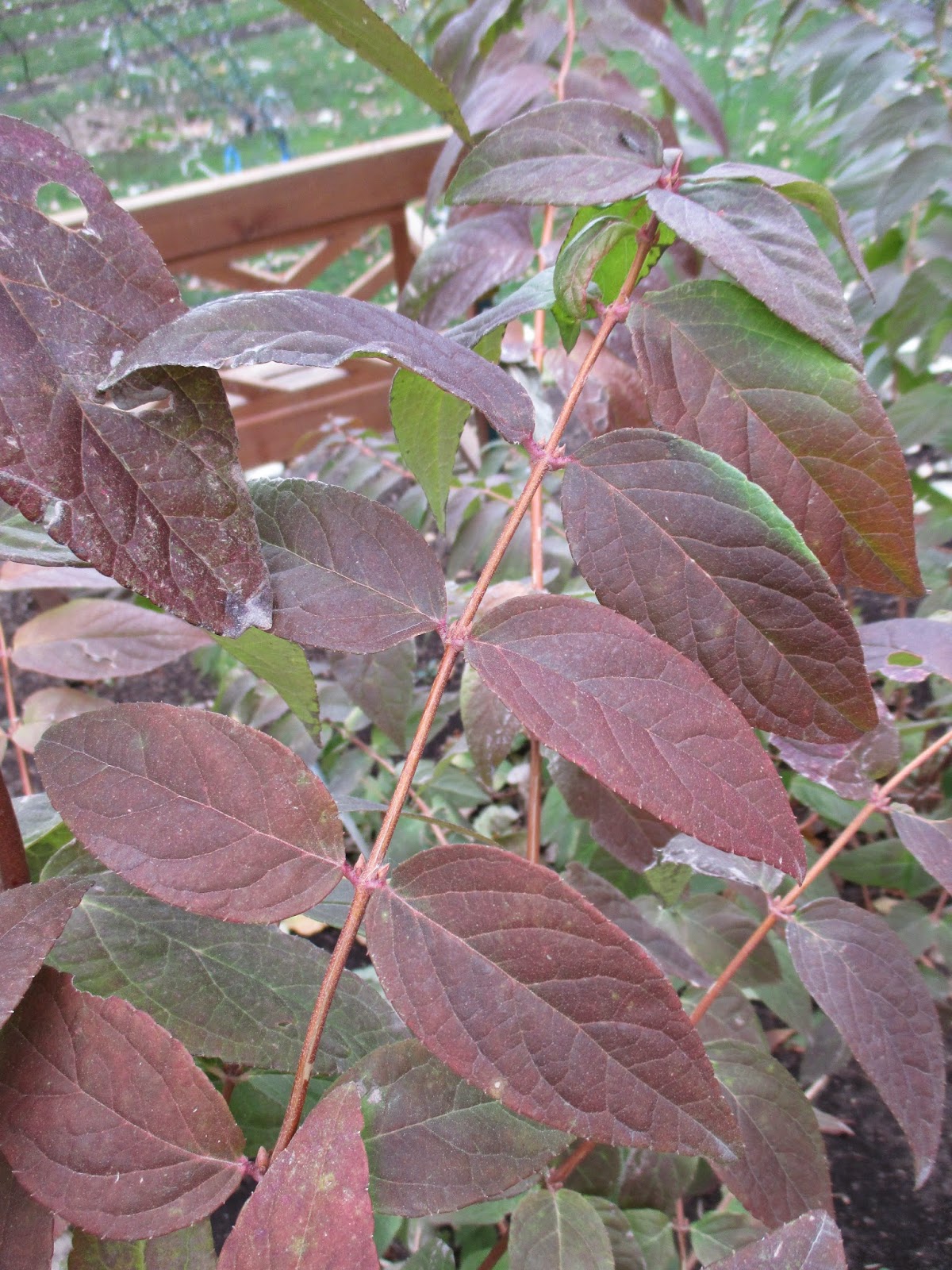 fall color on 'Magicien' deutzia (Deutzia hybrida) - woody shrub