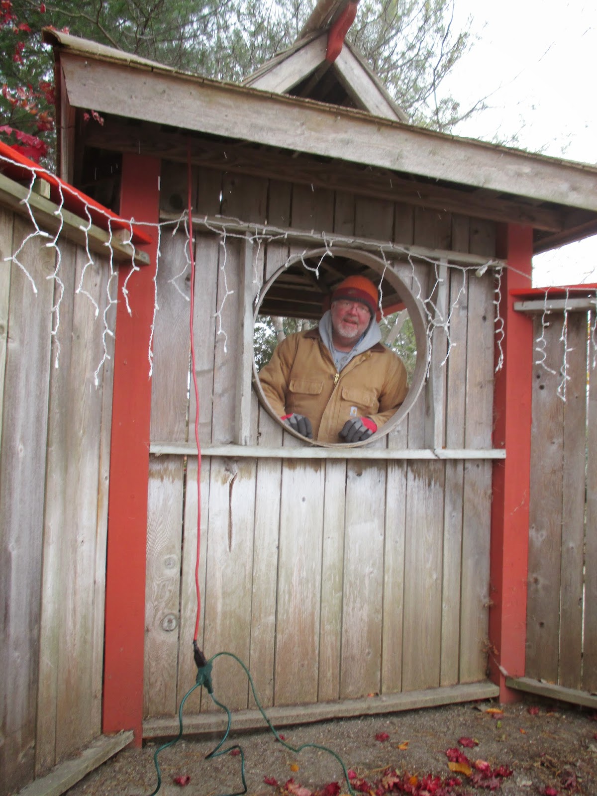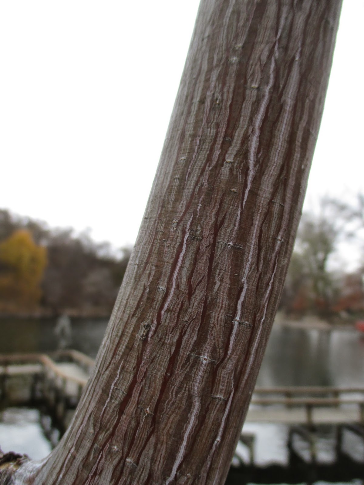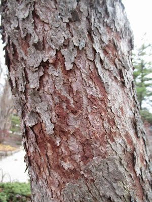 Our grounds staff is getting smaller. Today it was only Big John (above), Larry and me. All three of us worked on different HLS-related projects. John continues to put up lights and displays while Larry finished the lights on the main building and did lots of odds and ends as well. I did more cord-running most of the day but had a meeting as well. Below are more late season shots with a strong focus on ornamental bark!