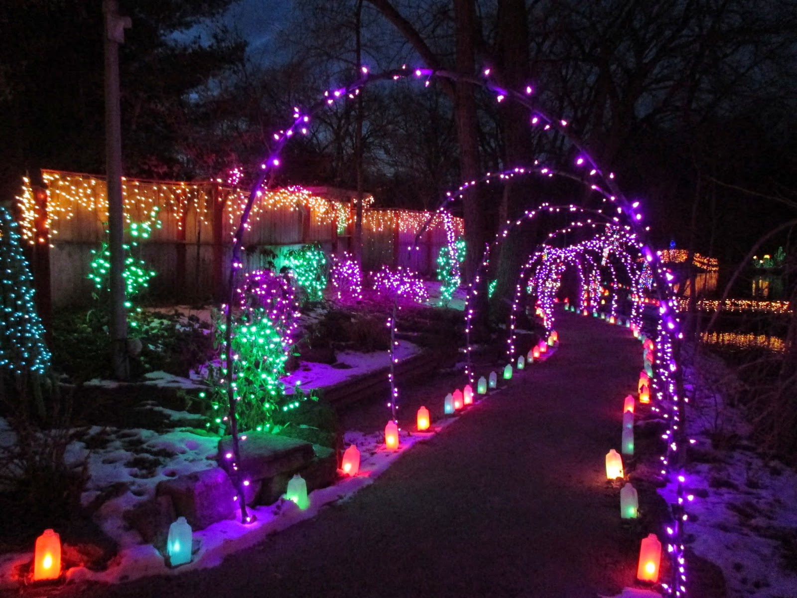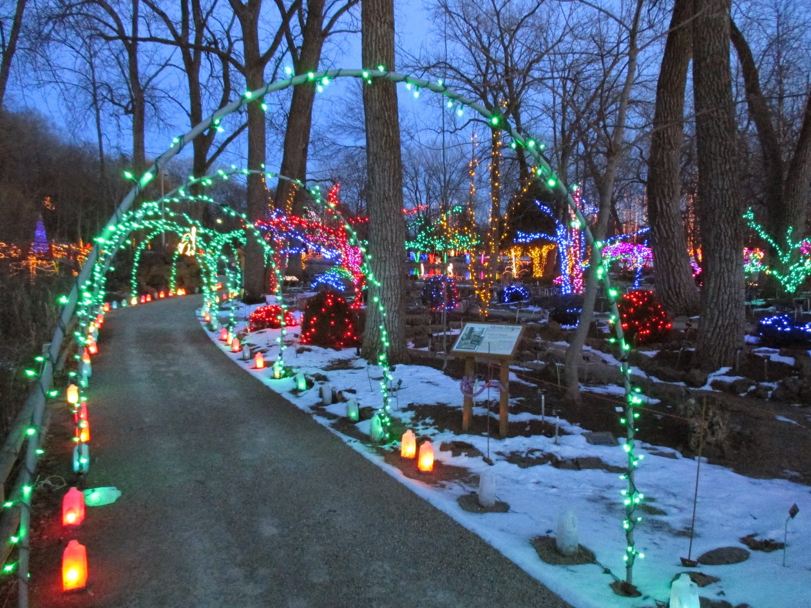 These images were all taken last night at the last of our Holiday Lights Show (HLS) test nights. The show is running well and we've tweaked as needed. Another light dusting of snow would be nice but we've all agreed that this is our best HLS yet! The show opens for the public a week from today on December 12th (4:30 pm - 8 pm, last ticket sold at 7:30 pm) and runs for eleven nights. Check out www.rotarybotanicalgardens.org for more dates and information on this popular family event.