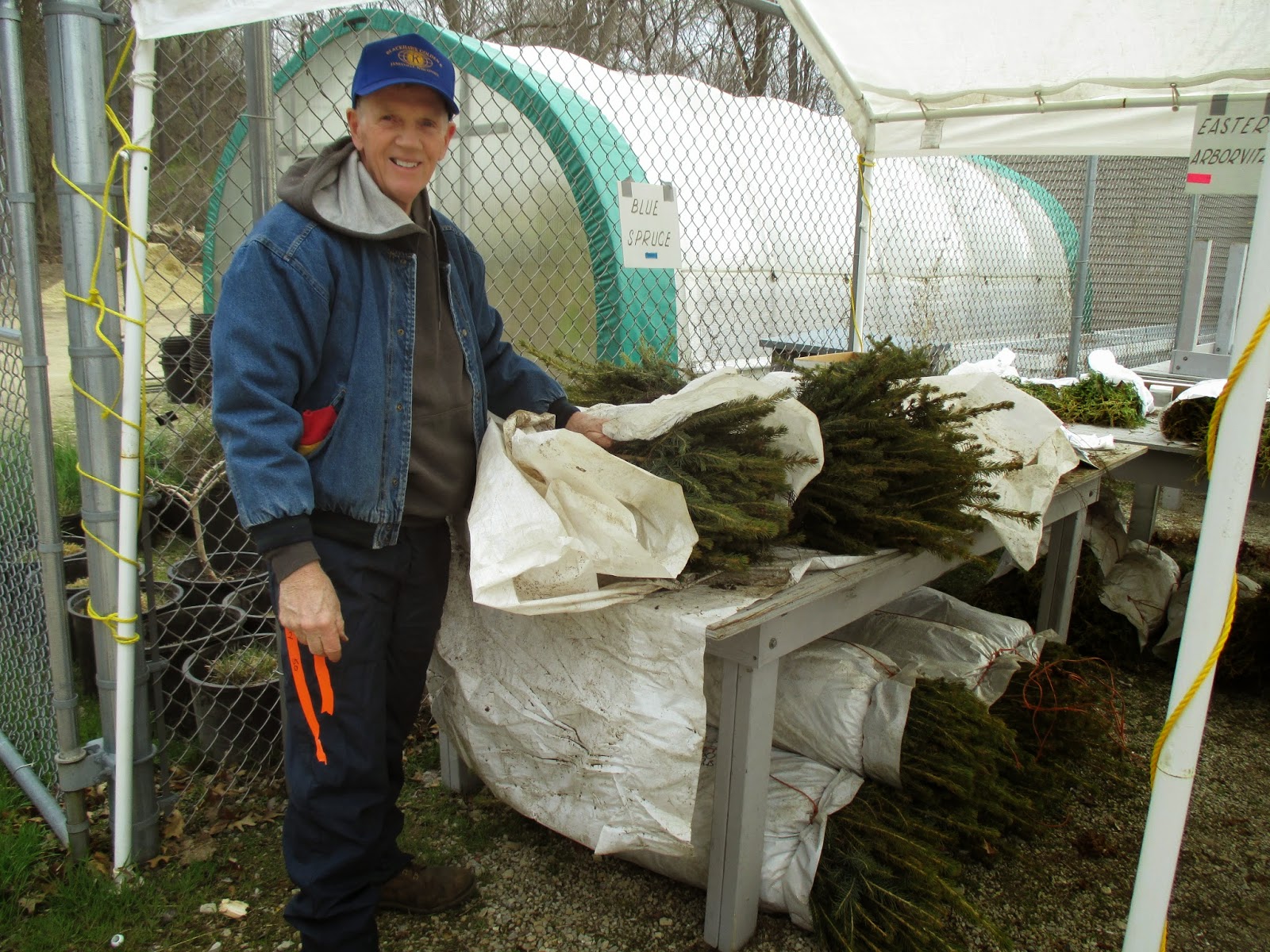 Kathy (above) was one of many volunteers that helped out today. Kathy did a great job tidying multiple areas with a strong focus on dealing with early weeds. Dr. Gredler was in for painting and mowing out in the gardens. He also is spreading grass seed in thin areas. Bill O. was around this morning to help paint inside and Maury ran errands for us and also helped with the tree sale. Kay came in to tidy up in the sunken garden as our first wedding of the season is this Sunday in that space. Jenny was in to work on more label preparations and we also saw Polly, Dick H., Glenn D. and many others today.
