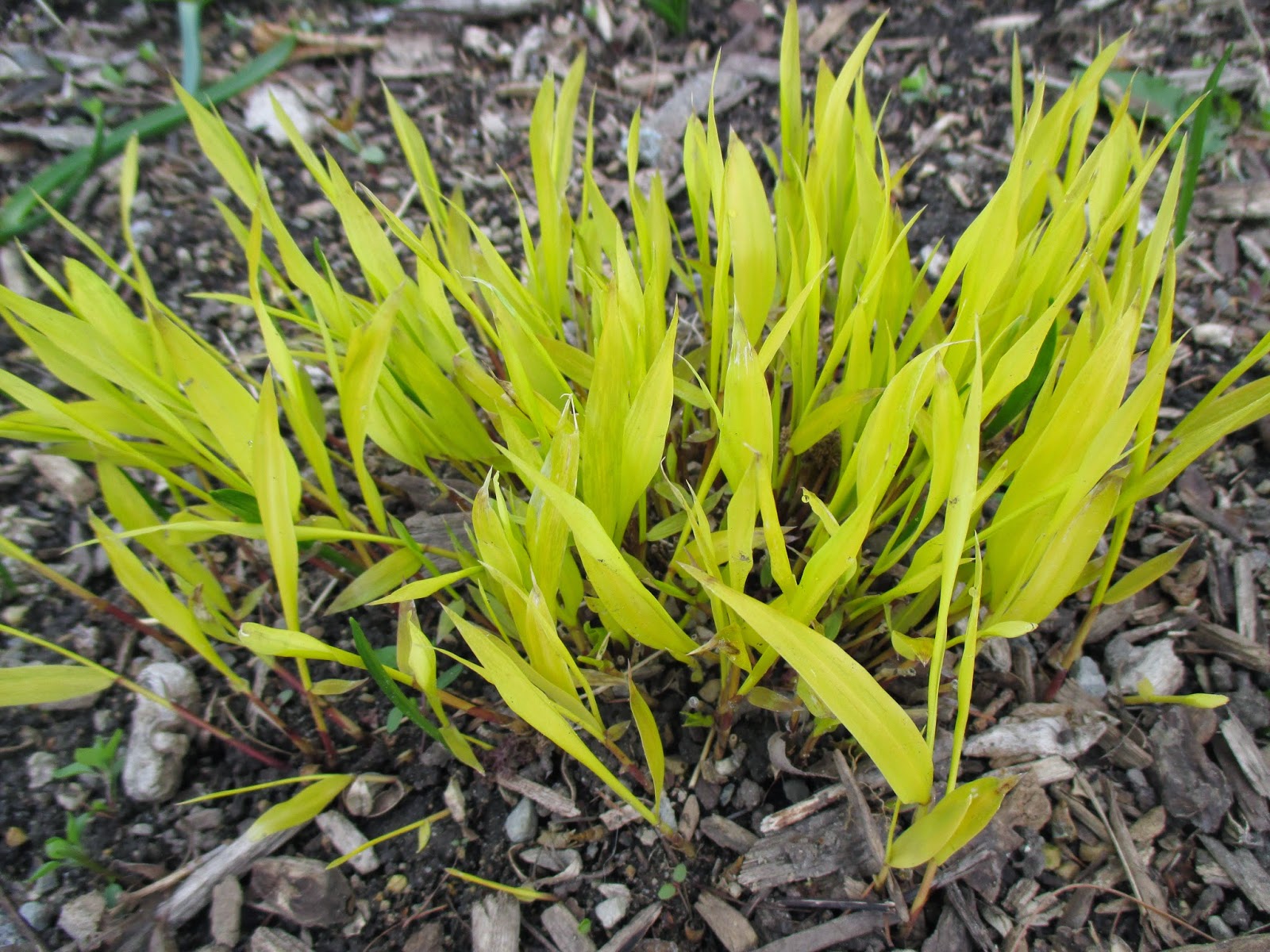emerging 'All Gold' Hakone grass (Hakonechloa macra)
