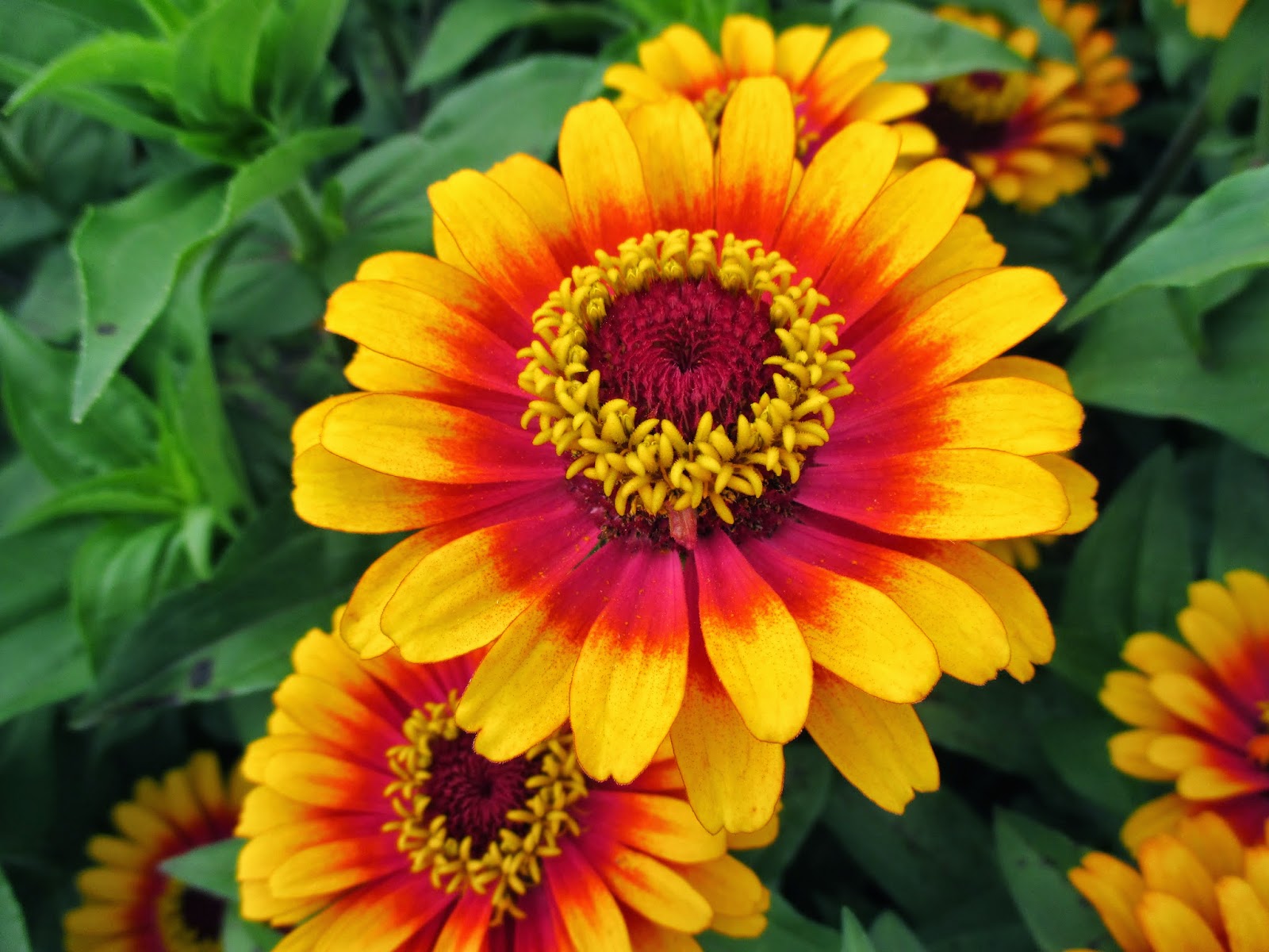 'Zowie! Yellow Flame' zinnia (Zinnia elegans)