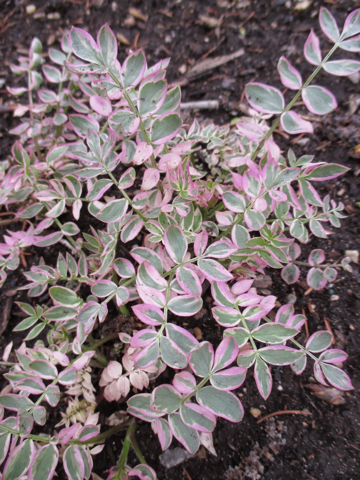 variegated Jacob's ladder (Polemonium reptans 'Stairway to Heaven') emerging