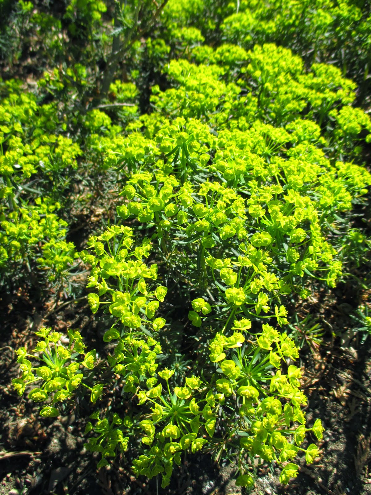 'Fen's Ruby' cypress spurge (Euphorbia cyparissias) in bloom (reseeds like crazy!)