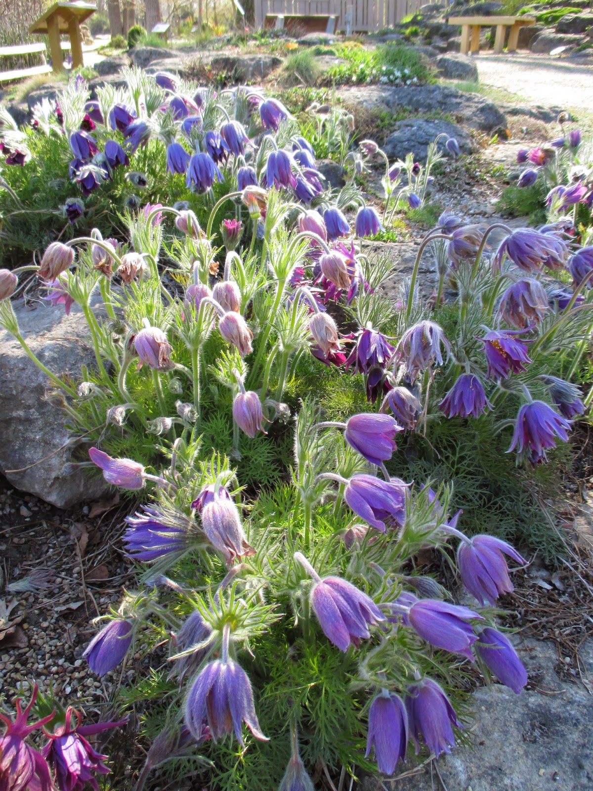 patch of pasque flowers (Pulsatilla vulgaris) waking up this morning