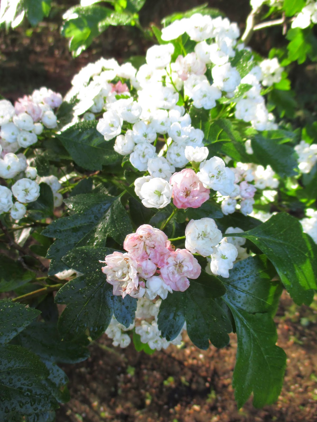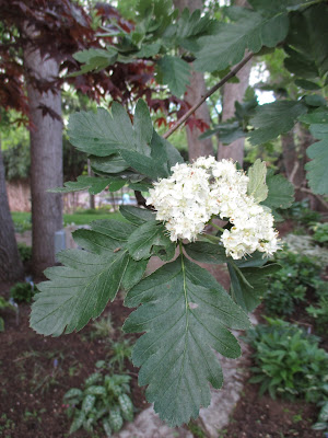 I took the photo above this morning but it was inspired by the same shot Marsha Mood took very recently and caught the rainbow in the fountain as well. I shamelessly replicated her shot and was glad I did so (thanks Marsha!). It was a cool start to the day and some of our tropicals in the yard didn't look very happy this morning. The weather feels like mid April but I hope we'll be warming up again soon. The grounds staff put row covers over our most tender annuals as a protective blanket against another very cold evening. We all had a busy day but mine went quickly from laying out plants to desk work to a presentation for the Loves Park (IL) Rotary Club then back for two meetings. The day was both long but went quickly too!