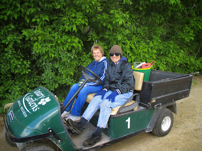 I wasn't out in the gardens very long but captured the color seen below. The grounds staff of Larry, Big John, Janice, Cindy and Cheryl all kept busy with a wide range of gardening tasks which included weeding, watering, mowing, etc. Everyone did a great job. Our volunteers included Eva and Kathy (second photo from the bottom) who headed down in to the sunken garden for more weeding. Kay was in to tidy up her area and Roy and Mary were in to install 100+ annuals in the shade garden this morning. Dr. Gredler and Bill O. both mowed and Doc also helped with some painting. Vern was in for some carpentry and we also saw Dick H., Urban (preparing the observation pier for repainting), Maury and many others today. Our Horticulture Therapy Committee (Mary W., Elaine, Darcie, Ellie, Art, Janice, Cindy, Mary N. and Kris K) met for an afternoon meeting as well. I've dozed a couple times while typing this so I'll hang it up but more fun and photos tomorrow!